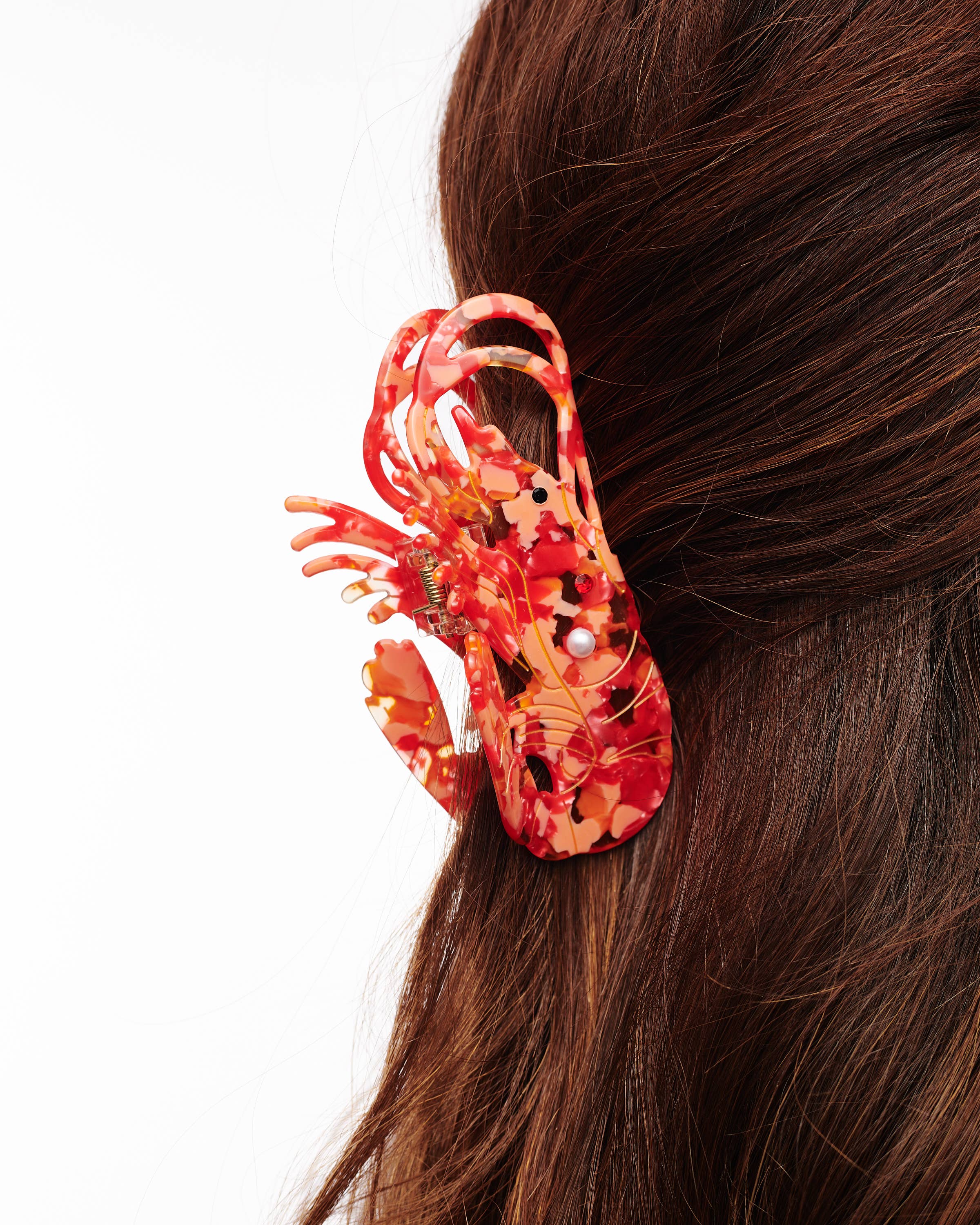 Appel à tous les amateurs de fruits de mer ! Notre barrette au homard est un rêve chic côtier devenu réalité. Fabriqué à la main à partir d'acétate de cellulose écologique, cet accessoire de 4 x 2 pouces ajoute une touche ludique à n'importe quel look. Avec ses variations de couleurs uniques, il est parfait pour tous ceux qui recherchent une pièce unique et durable pour leur garde-robe de plage. Cette barrette fait partie de la collection Dinner Party, un régal pour vos cheveux ! Cette collaboration ludique entre Nettle Studios et Jenny Lemons, amies de longue date, propose des griffes à cheveux qui se marient parfaitement avec les imprimés éclatants de Nettle. Dotée d'une ambiance de fête rétro comme la salade Jello, le homard, les huîtres et le cocktail de crevettes, cette collection est parfaite pour les fêtes de fin d'année ou toute autre célébration festive !