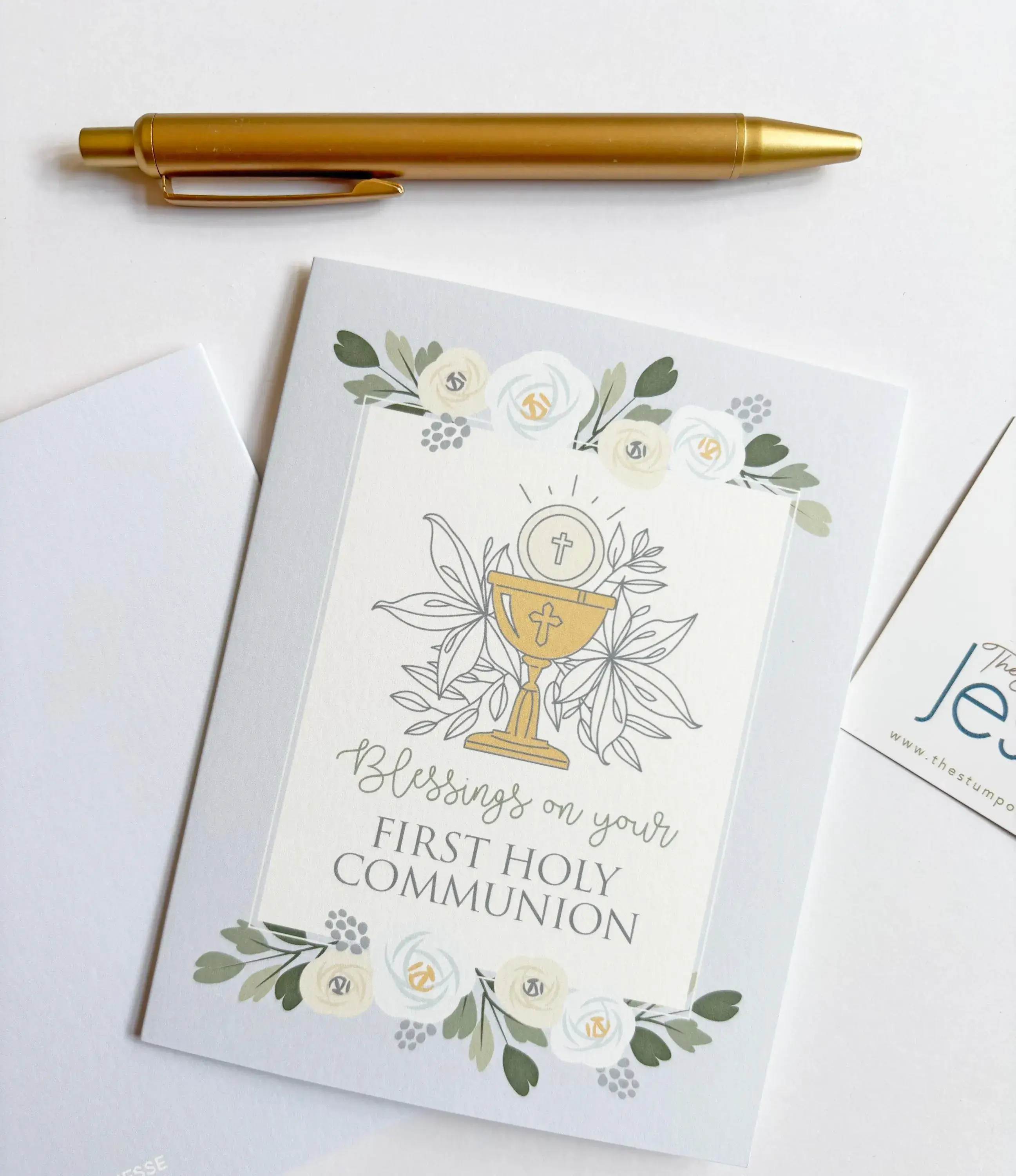 Fêtez leur baptême avec l'une de nos cartes. Intérieur vierge pour écrire un message manuscrit. DÉTAILS 4,25 po x 5,5 po Imprimé sur du papier couverture de 120 lb de qualité Comprend une enveloppe blanche à rabat européen Emballé dans un étui en plastique transparent Intérieur vierge