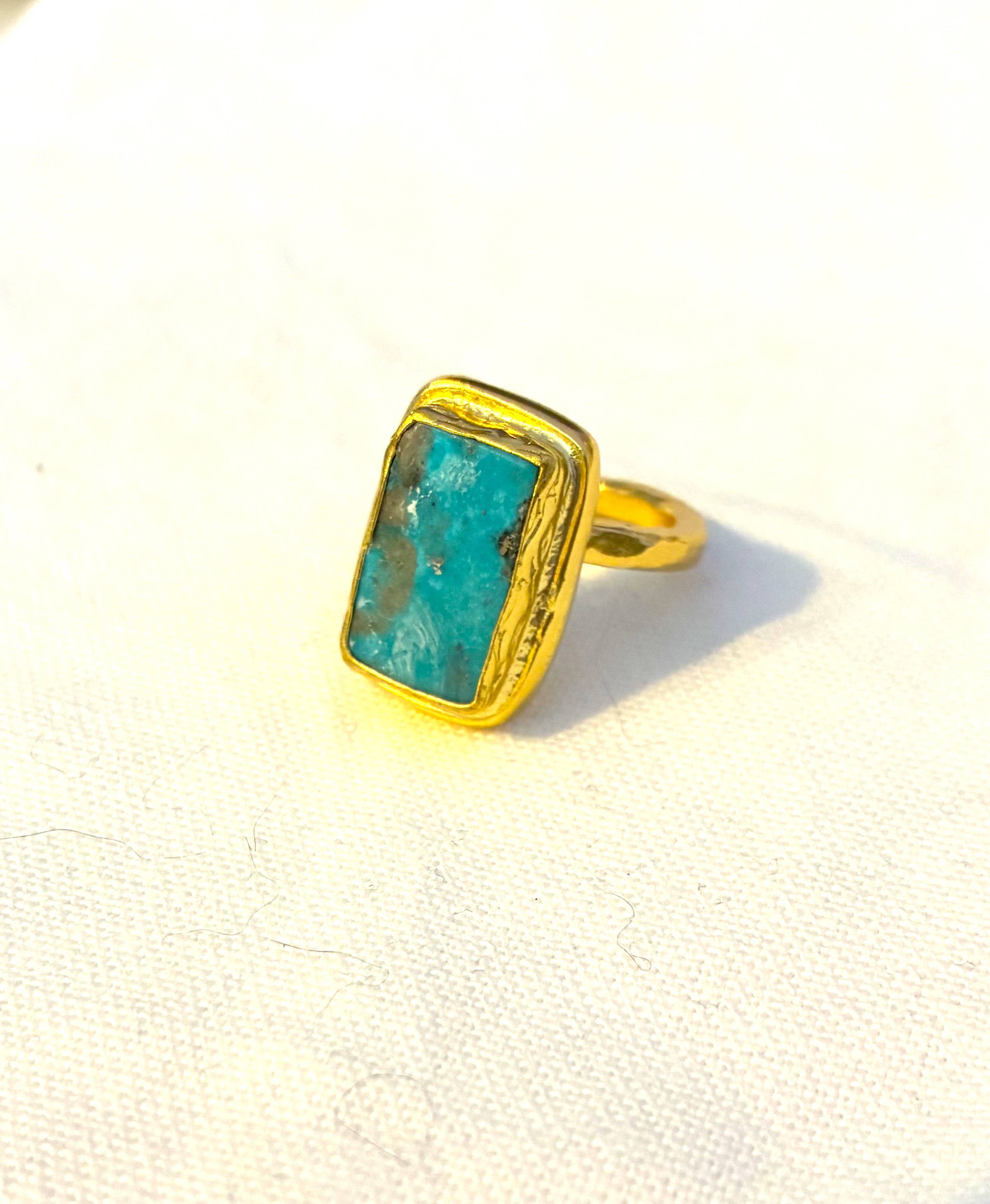 Superbe bague de cocktail conçue pour faire une impression durable. Fabriqué à partir d'une base en laiton massif avec finition en or 18 carats poli et émail bleu serti à la main.