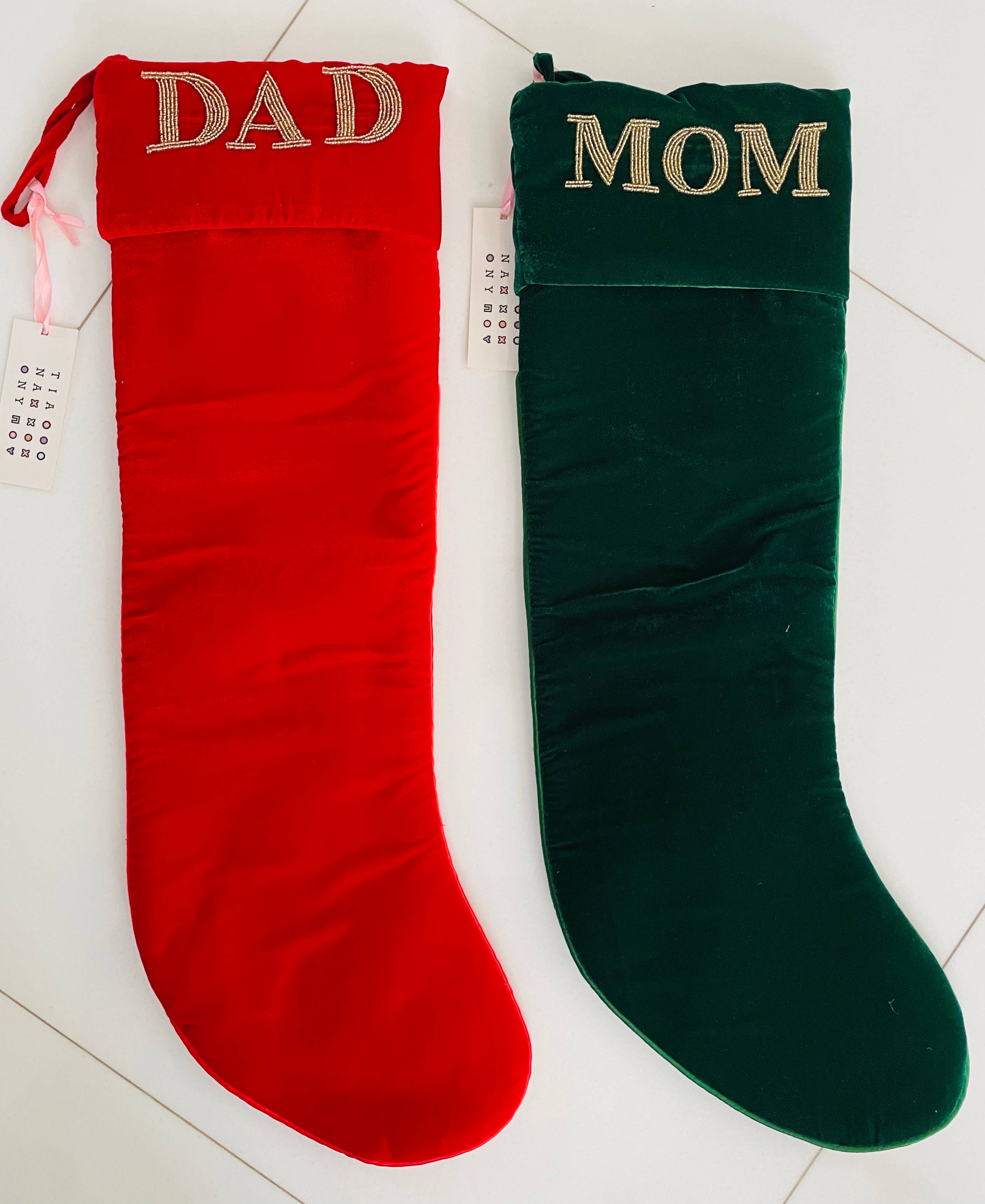 Chaussettes de Noël personnalisées parfaites comme cadeaux pour la famille. En velours doux, ces chaussettes décoratives apporteront une touche chaleureuse à votre décoration de Noël. Fabriquées aux États-Unis, elles sont personnalisables pour chaque membre de la famille.