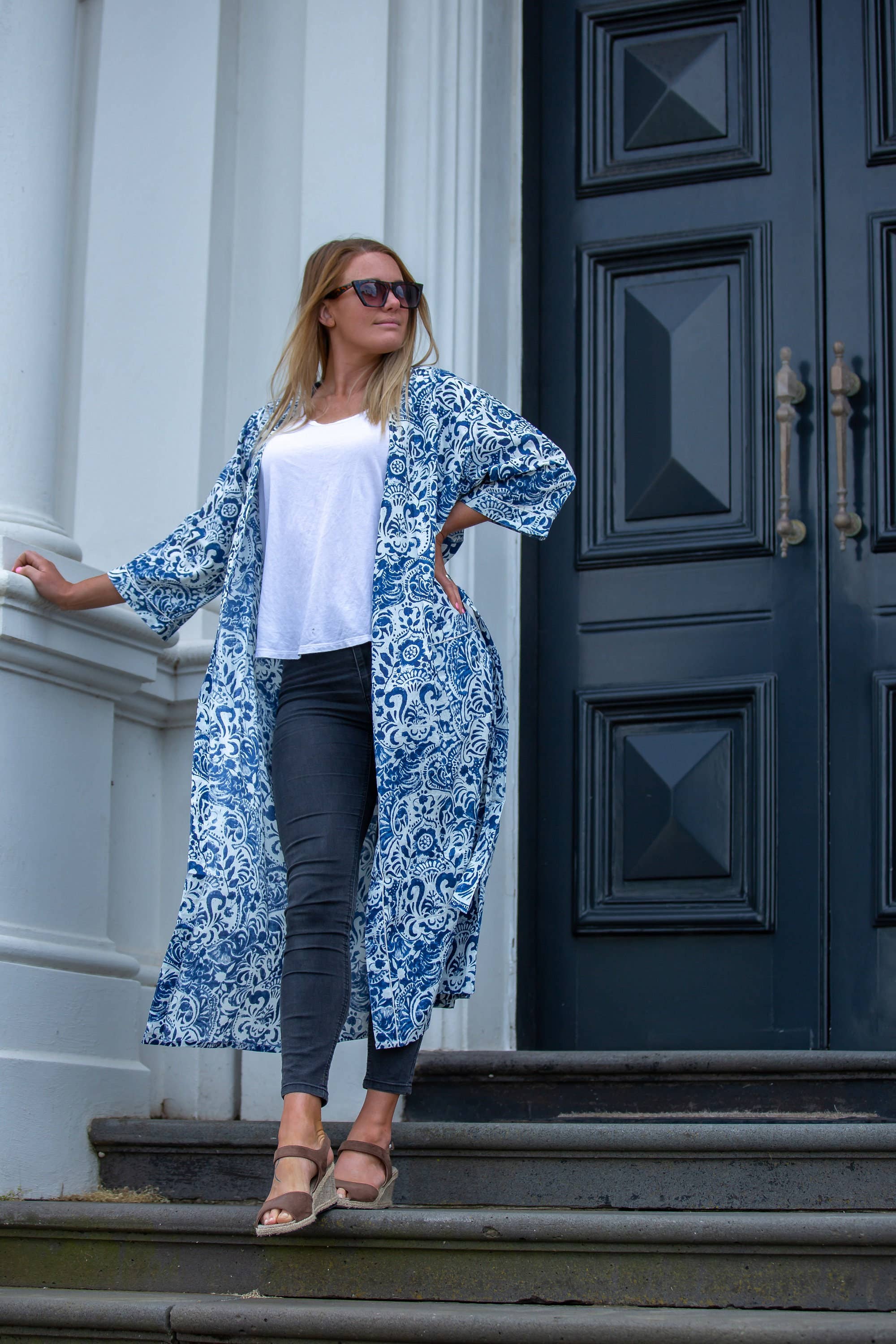 Robe d'été caftan kimono en coton à fleurs blanches