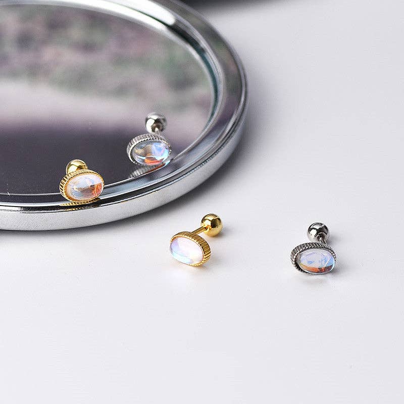 Pleine lune — Grandes boucles d'oreilles rondes en forme de pierre de lune arc-en-ciel de 8 mm en argent sterling en vente B2B