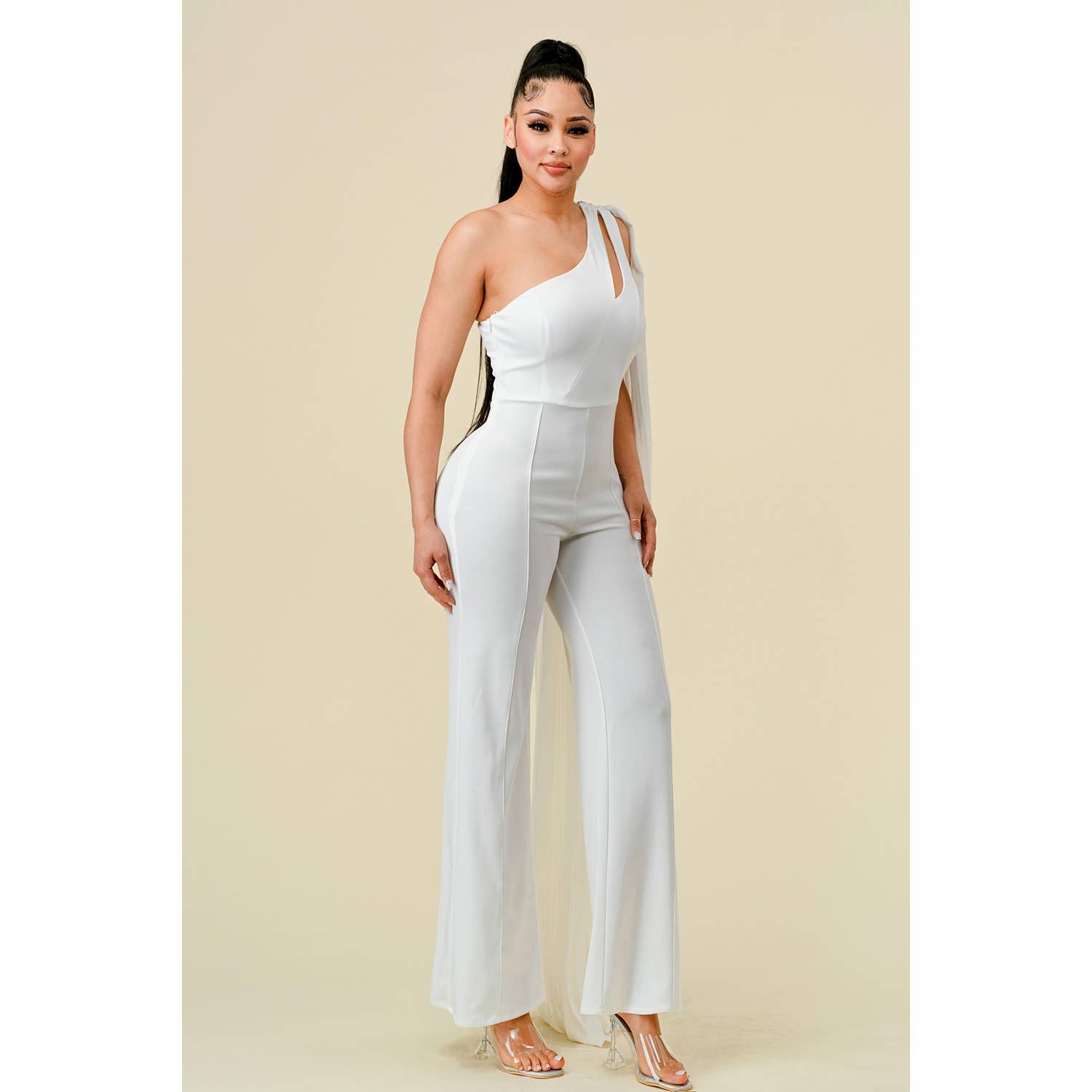 combinaison froncée à épaules dénudées et ourlet fendu style : élégant, sexy type : combinaison matériau : polyester encolure : épaules dénudées style de manches : manches longues longueur : longue type de motif : uni décoration : froncée, fendue type de coupe : normal occasion : fête