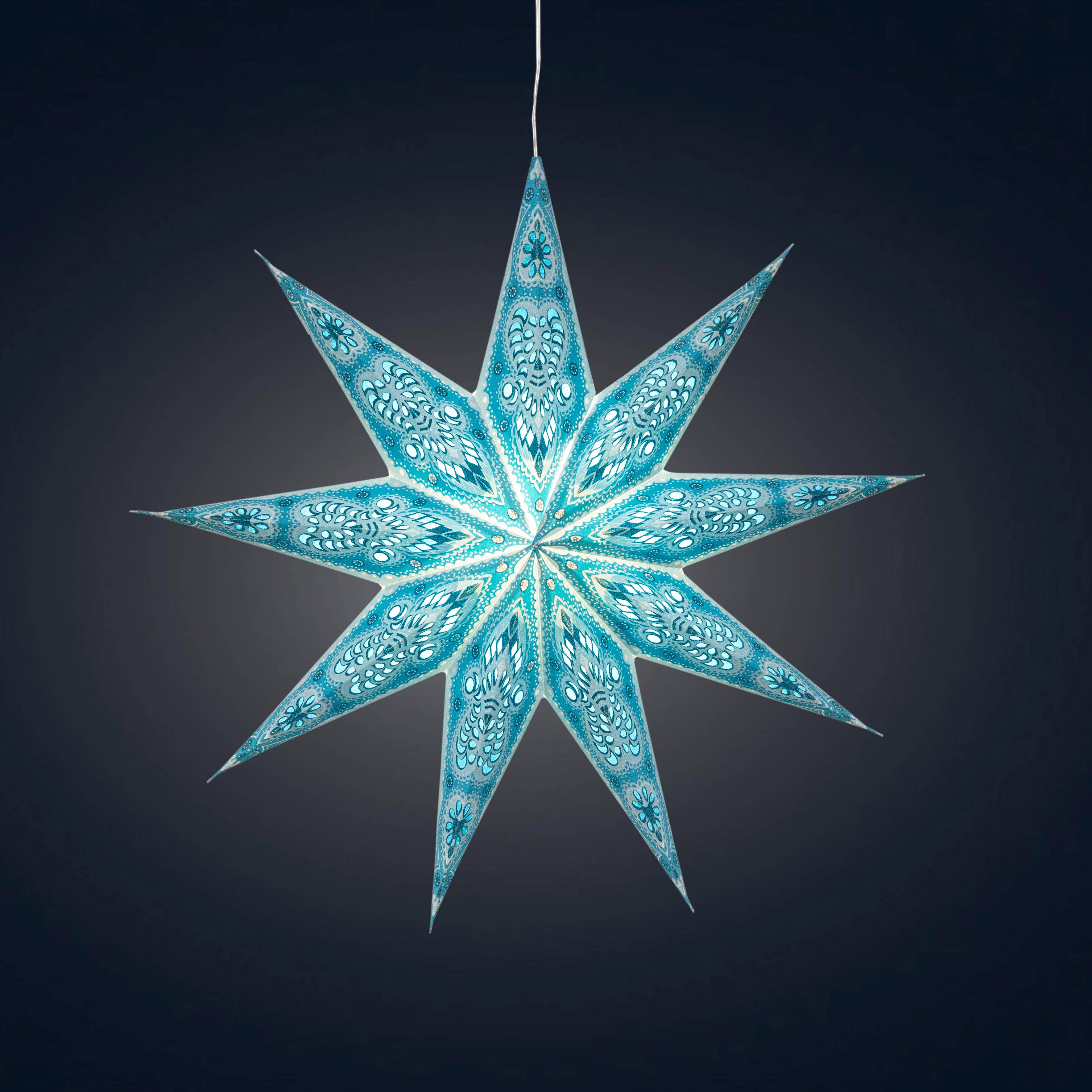 Lanterne étoile en papier à paillettes Siklon 5 Pointer 24" turquoise en vente B2B