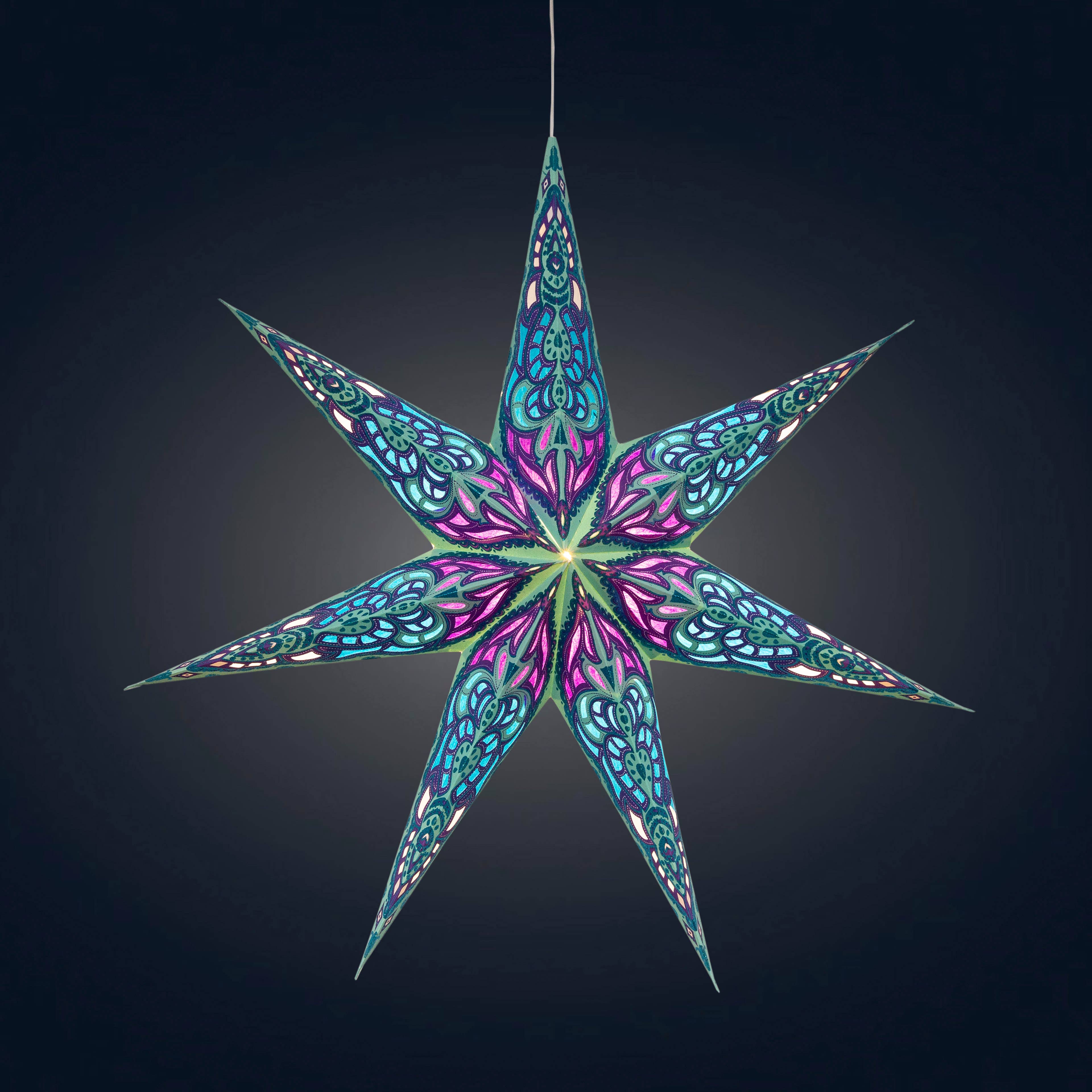Lanterne étoile en papier à paillettes Siklon 5 Pointer 24" turquoise
