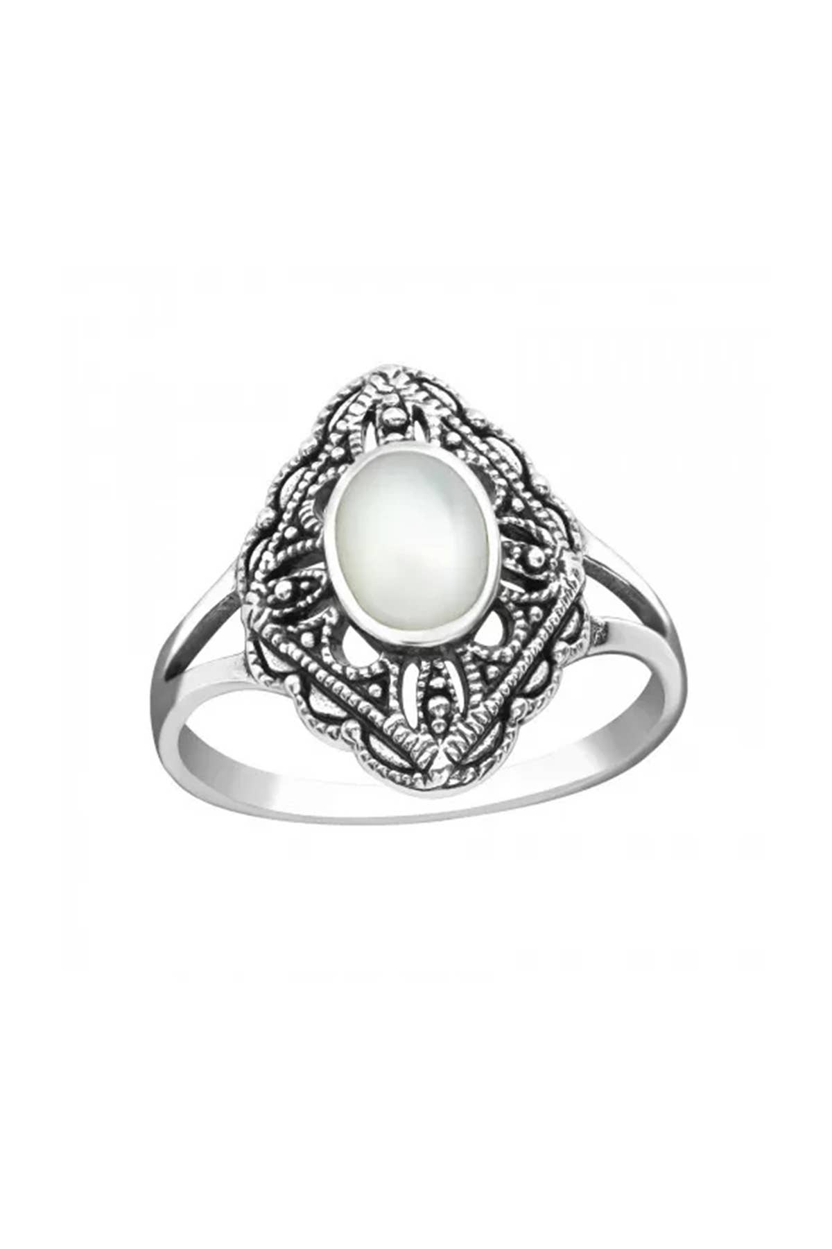 Bague centrale en argent sterling avec perles blanches à double pétale