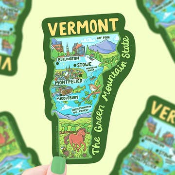 Autocollant Carte des villes du Vermont lettrée à la main en vente B2B