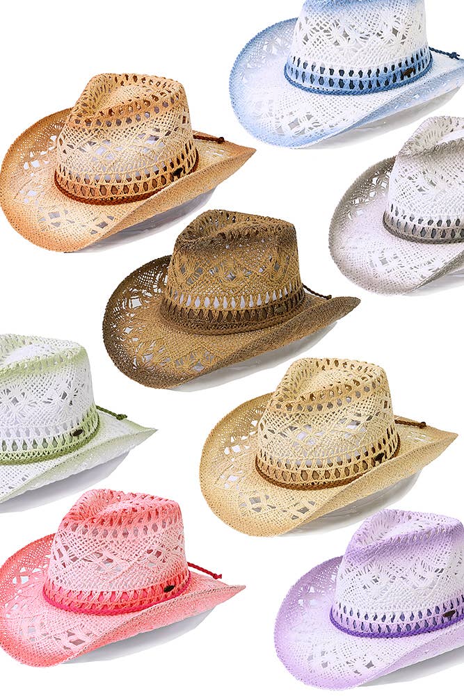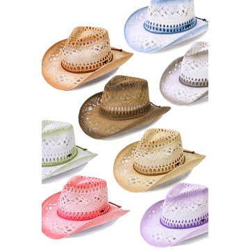 Cette pièce est parfaite pour ceux qui veulent mettre en valeur leur style unique, ce chapeau de cowboy contient un design de mode en paille tressée spécial. Un chapeau de cowboy élégant qui est parfait pour compléter votre tenue préférée. Disponible en BK, IV, TA, PK, SA et WH. Cet article est vendu par lot de 1. Ce chapeau de cowboy est fabriqué à 100 % en papier.
