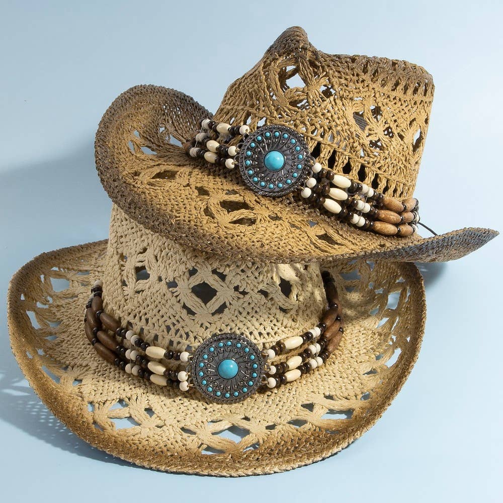 Chapeau de cowboy occidental en paille tressée