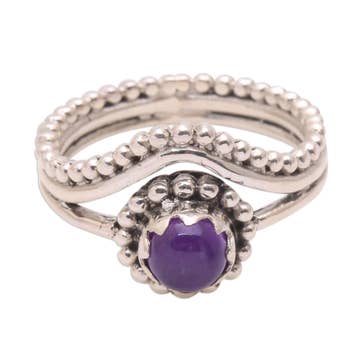 Pointe en cristal d'améthyste, anneau ovale en améthyste et péridot.