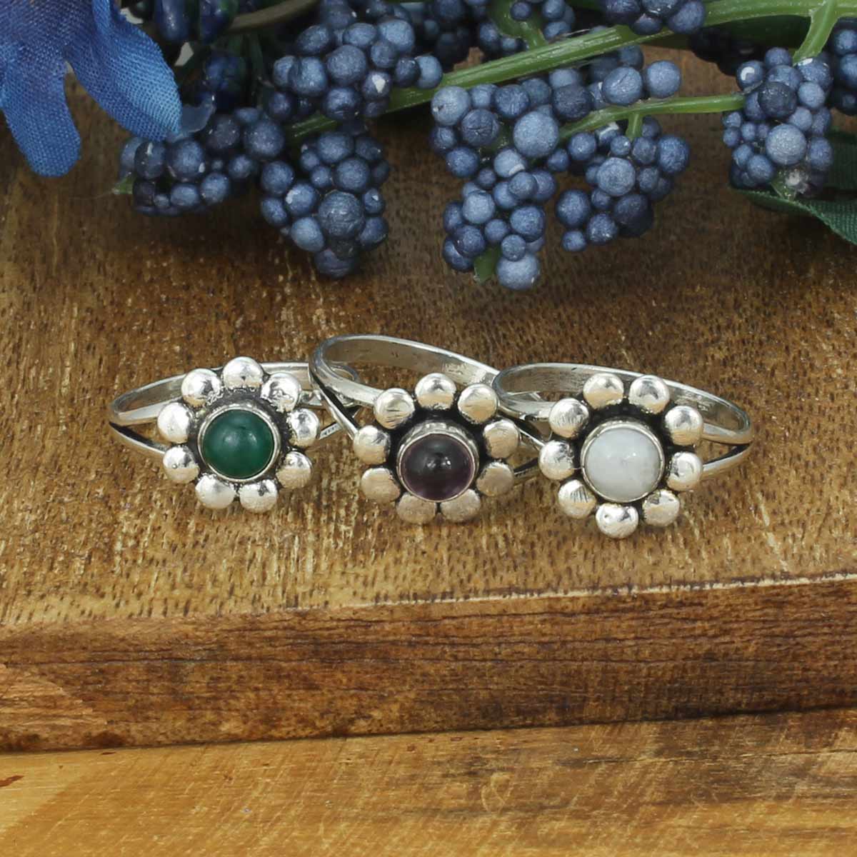 Pointe de cristal en améthyste, bague ovale en améthyste et péridot en vente B2B