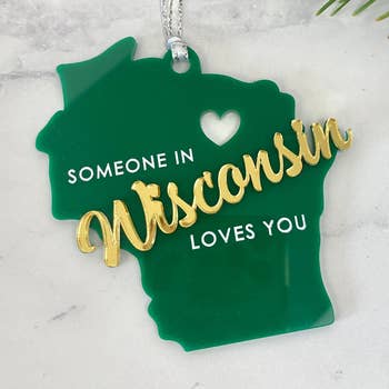 Décoration de Noël en bois personnalisée avec nom de ville du Wisconsin en vente B2B