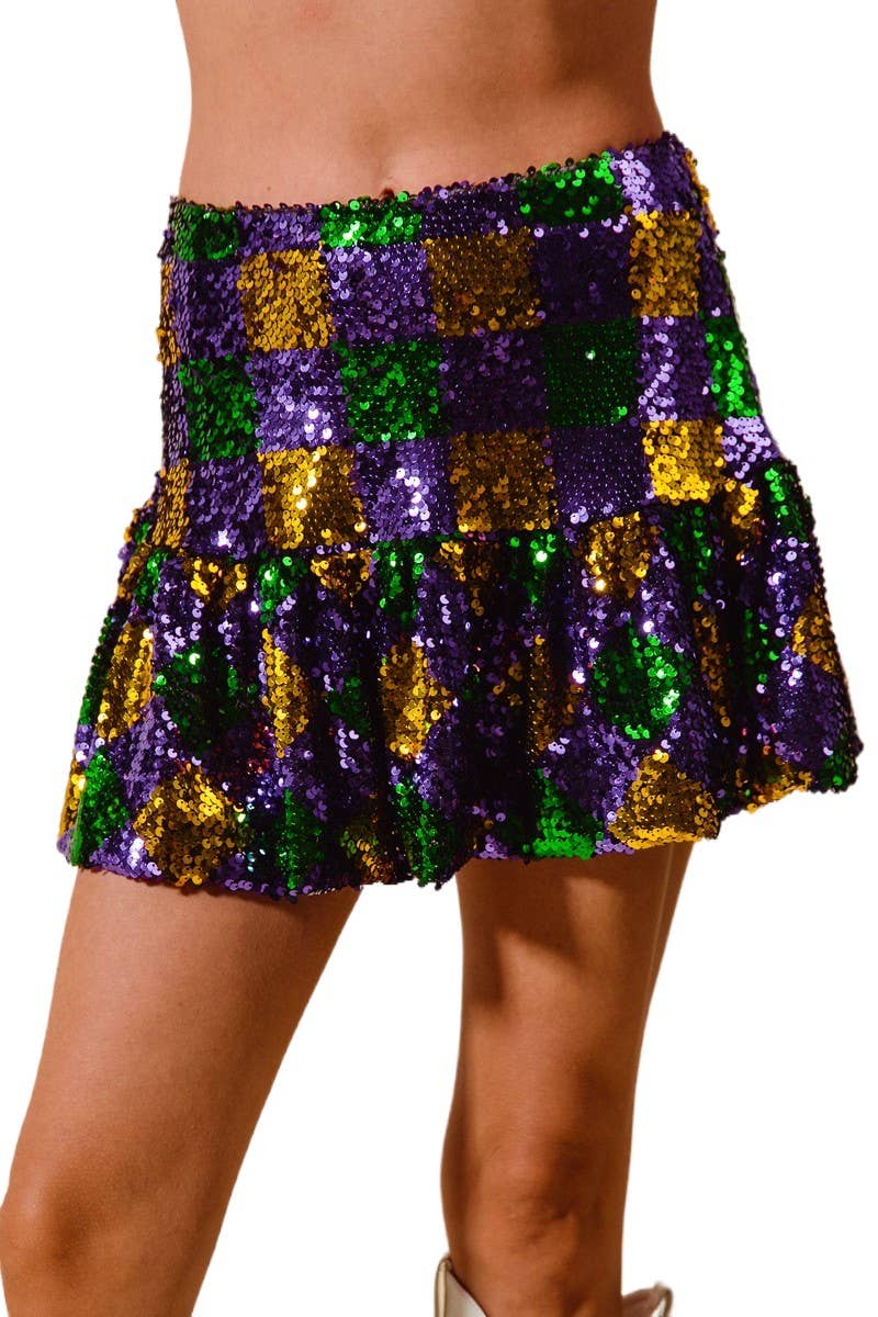 Scintillez et brillez dans cette jupe à franges en sequins verts, parfaite pour la Saint-Patrick, les soirées dansantes ou les événements festifs. Les franges superposées bougent à chaque pas pour un effet éblouissant. — Petit/Moyen