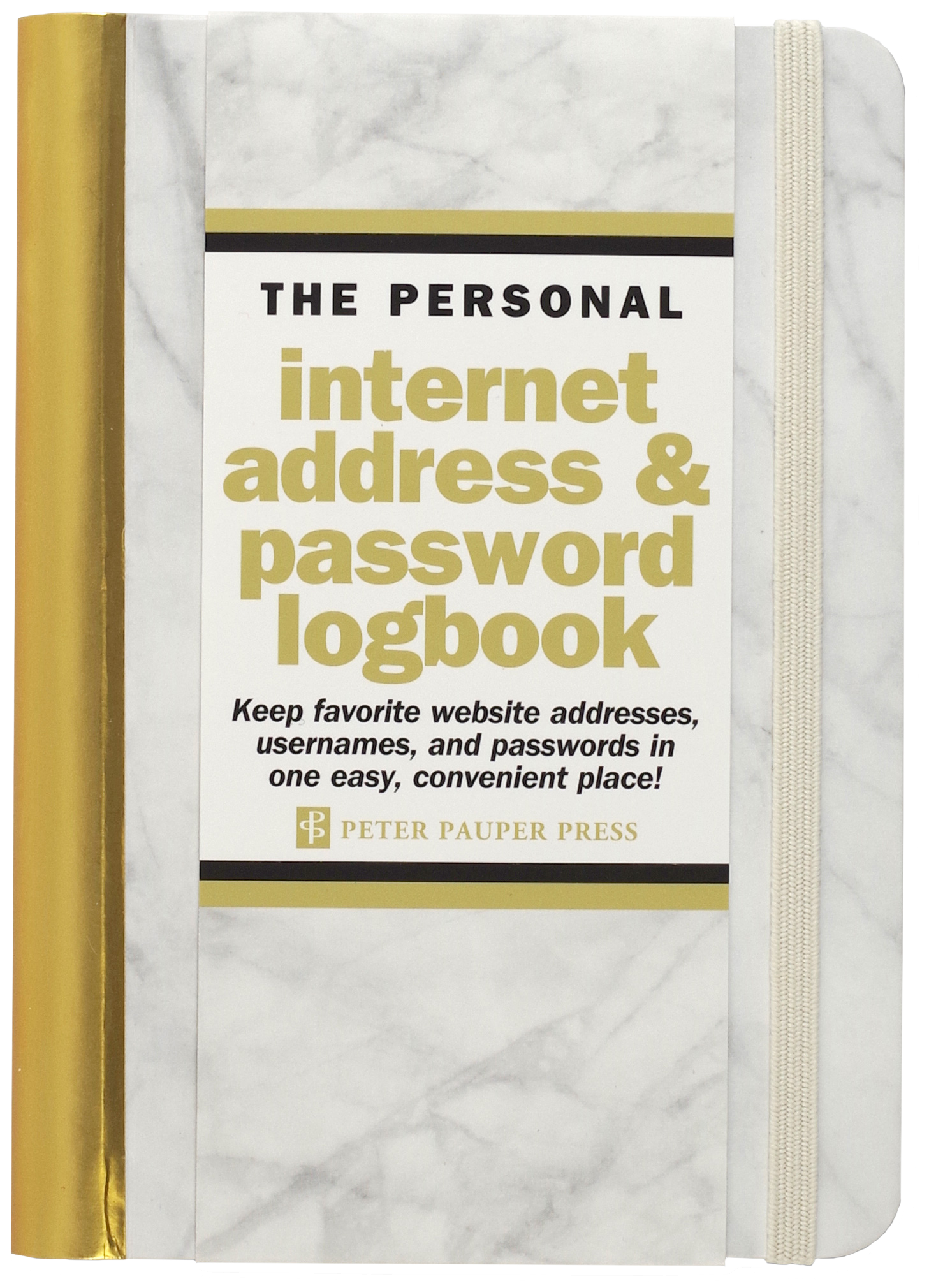 Vous en avez assez de perdre la trace des sites web que vous visitez, ainsi que de tous ces noms d'utilisateur et mots de passe ? Maintenant, vous pouvez les garder tous au même endroit pratique ! Ce petit volume qui vous fera gagner du temps et vous évitera des maux de tête est organisé avec des pages à onglets de A à Z, avec de l'espace sur chaque page pour noter les sites web, les noms d'utilisateur, les mots de passe et des notes supplémentaires. Vous pouvez également prendre des notes sur les configurations de réseau domestique, les numéros de licence de logiciel, etc., sur les pages à l'arrière du livre. La bande / étiquette de couverture amovible rend le carnet discret. La fermeture élastique assortie garde votre place ou maintient le carnet fermé. Design élégant à motif marbré avec une tranche en feuille d'or. Le carnet est un accessoire attrayant et pratique pour la maison ou le bureau.