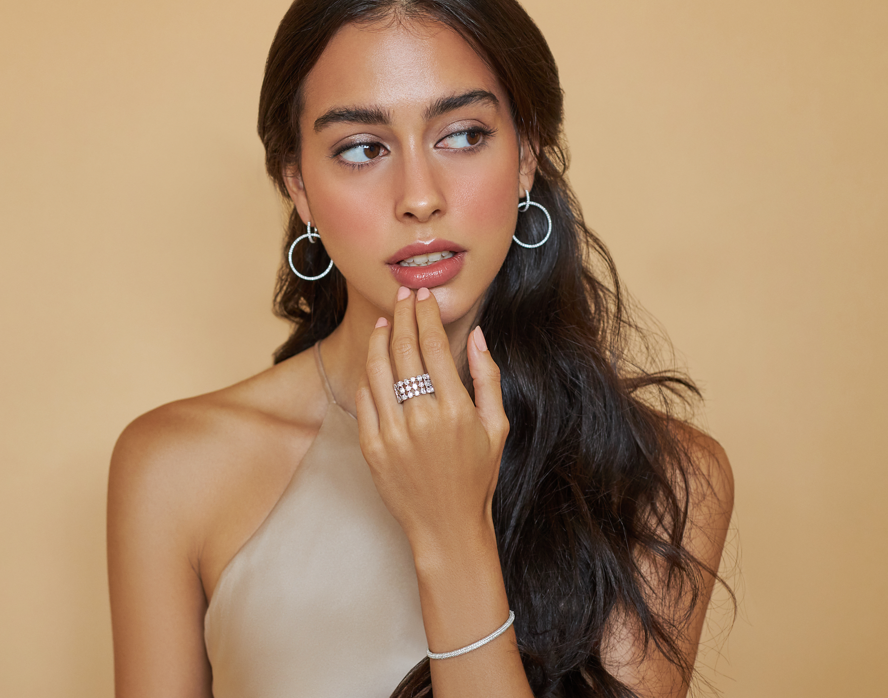 Boucles d'oreilles en diamants demi-pavés Brooklyn Open Circle en vente B2B