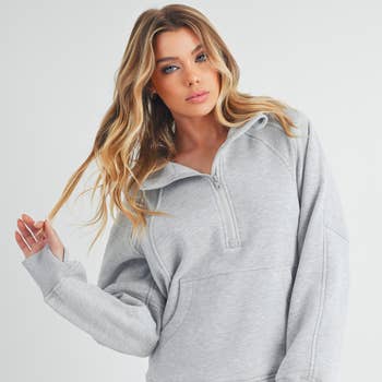 7,8 onces, molleton 50/50 coton/poly Fil à jet d'air pour plus de douceur Capuche double épaisseur avec cordons assortis Étiquette amovible pour plus de confort et de rebranding Coutures latérales avec un corps profilé pour une coupe féminine Fermeture éclair en métal YKK Poches avant