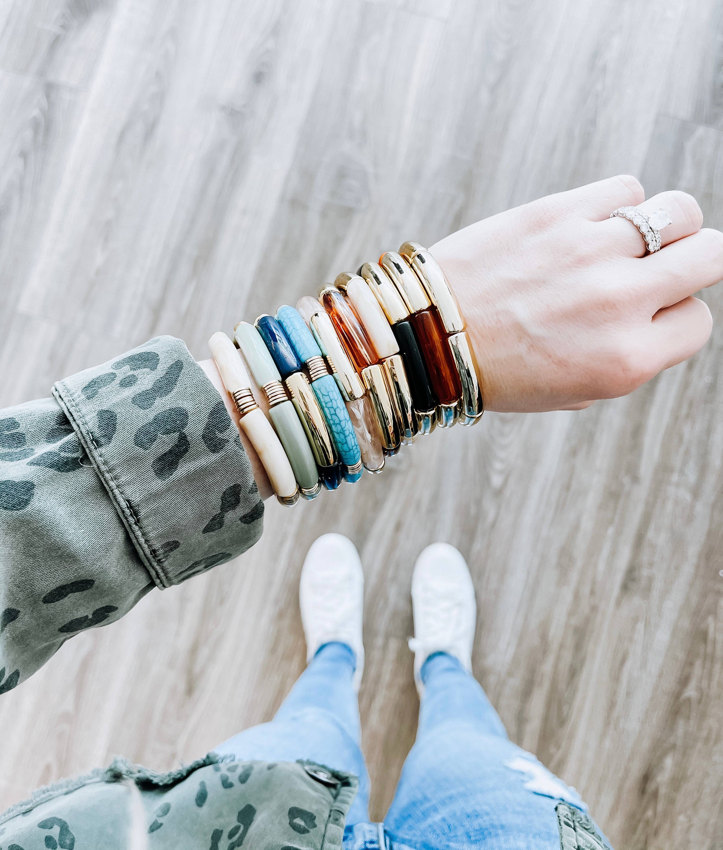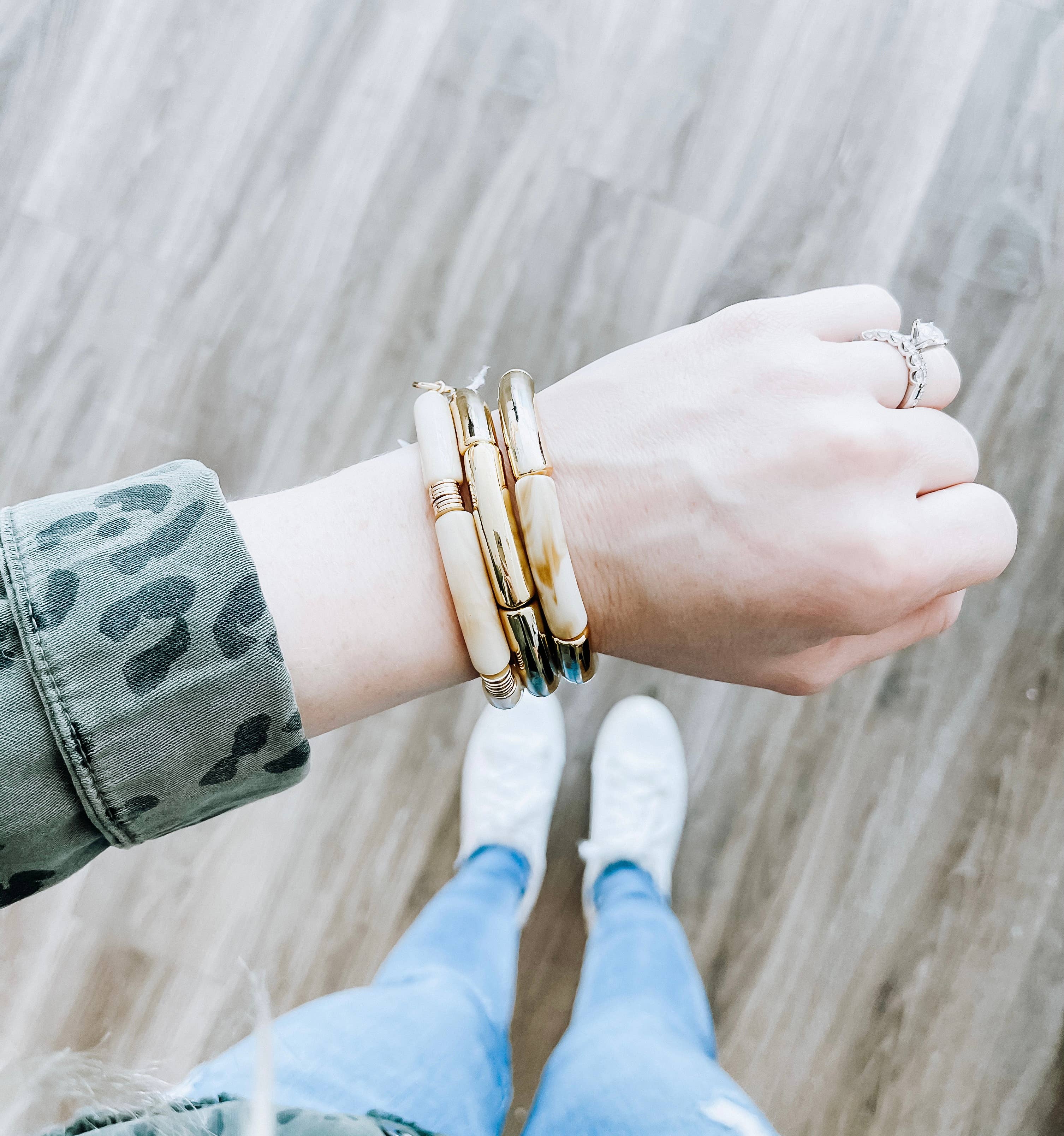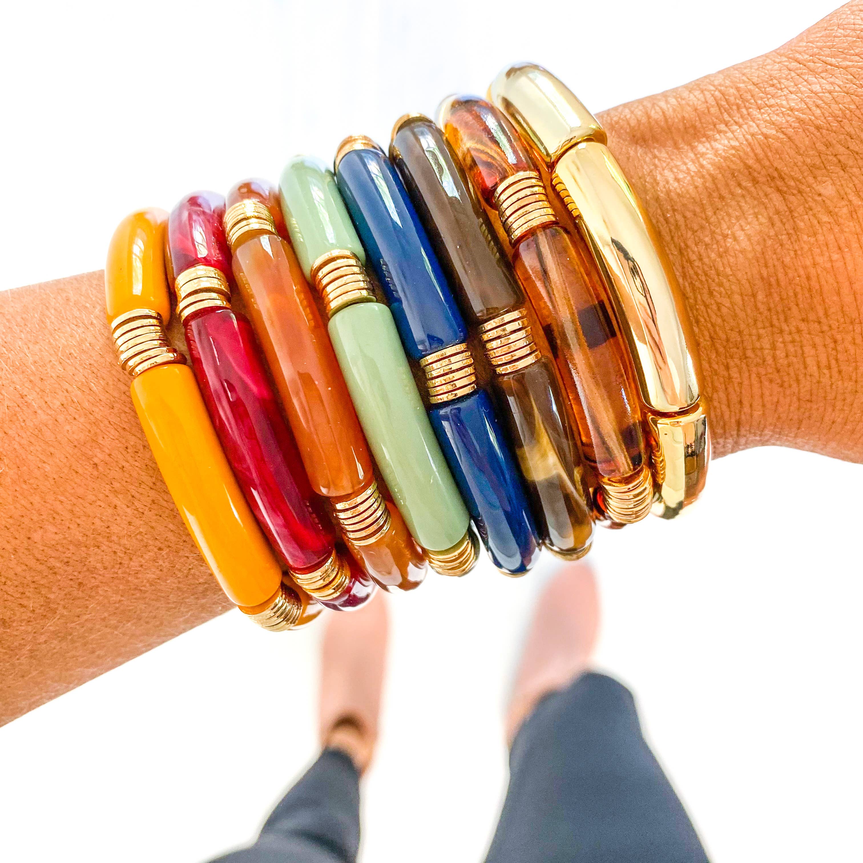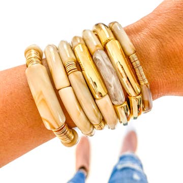 Nos bracelets en bambou en tube acrylique sont le bracelet idéal pour s'amuser. Vous pouvez les mélanger et les associer à d'autres bracelets en bambou en tube acrylique ou à n'importe quel autre style de bracelet pour créer des pièces uniques. - Stretch - Taille standard - S'adapte confortablement au poignet de 7 pouces Fabriqué en acrylique de haute qualité.