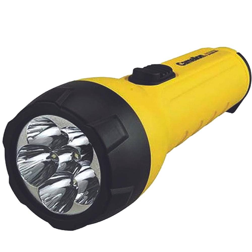 Ce design portable est de couleur jaune vif avec un faisceau de haute intensité, des LED de 100 000 heures et un boîtier en plastique. Comporte un interrupteur marche/arrêt à bouton-poussoir durable et une lentille incassable. 2 piles D sont incluses dans l'emballage. Comprend un anneau pliant à l'extrémité, ce qui permet d'accrocher facilement votre lampe de poche dans n'importe quelle situation lorsque vous avez besoin d'utiliser vos mains 6 LED super lumineuses de 100 000 heures Boîtier en plastique avec anneau pliant à suspendre 2 piles D incluses Bouton-poussoir marche/arrêt durable Objectif incassable 180 heures d'utilisation continue Alimenté par 2 piles D (incluses).