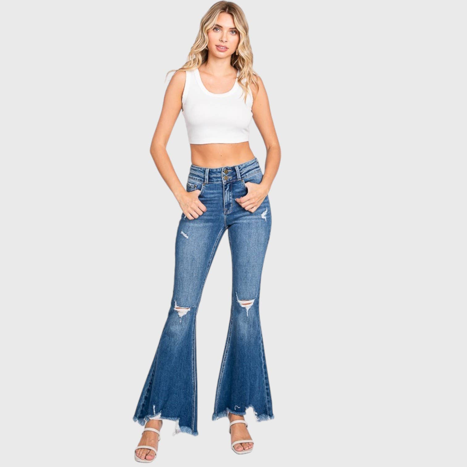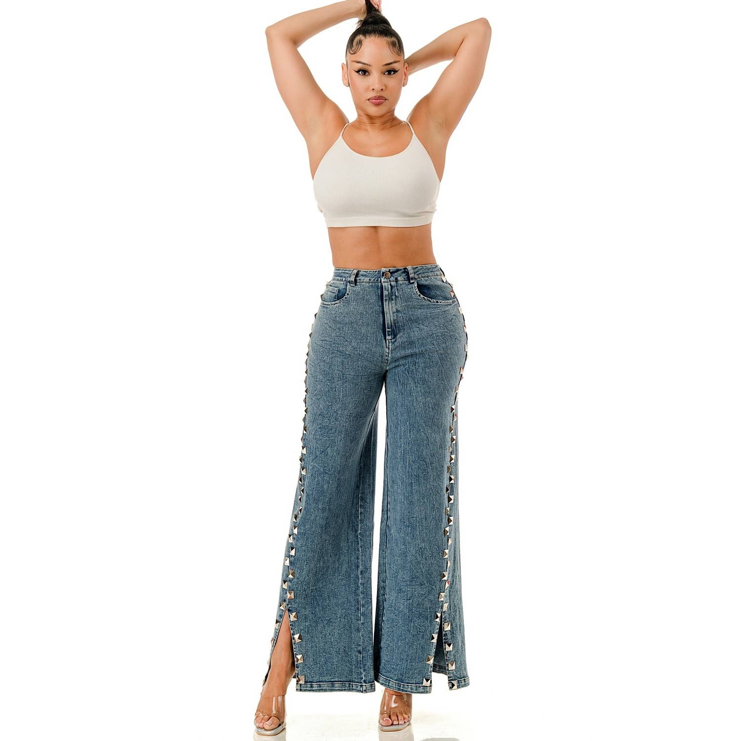 * Numéro de style : OP732H1-1 PANTALON EN JEAN À FRANGES LATÉRALES