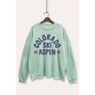 Sweat-shirt bleu clair Texte texturé rouge "Ski Bum" sur le devant 50 % polyester / 50 % coton Pré-emballage 2-2-2-2 (S-XL) Qté min. 8