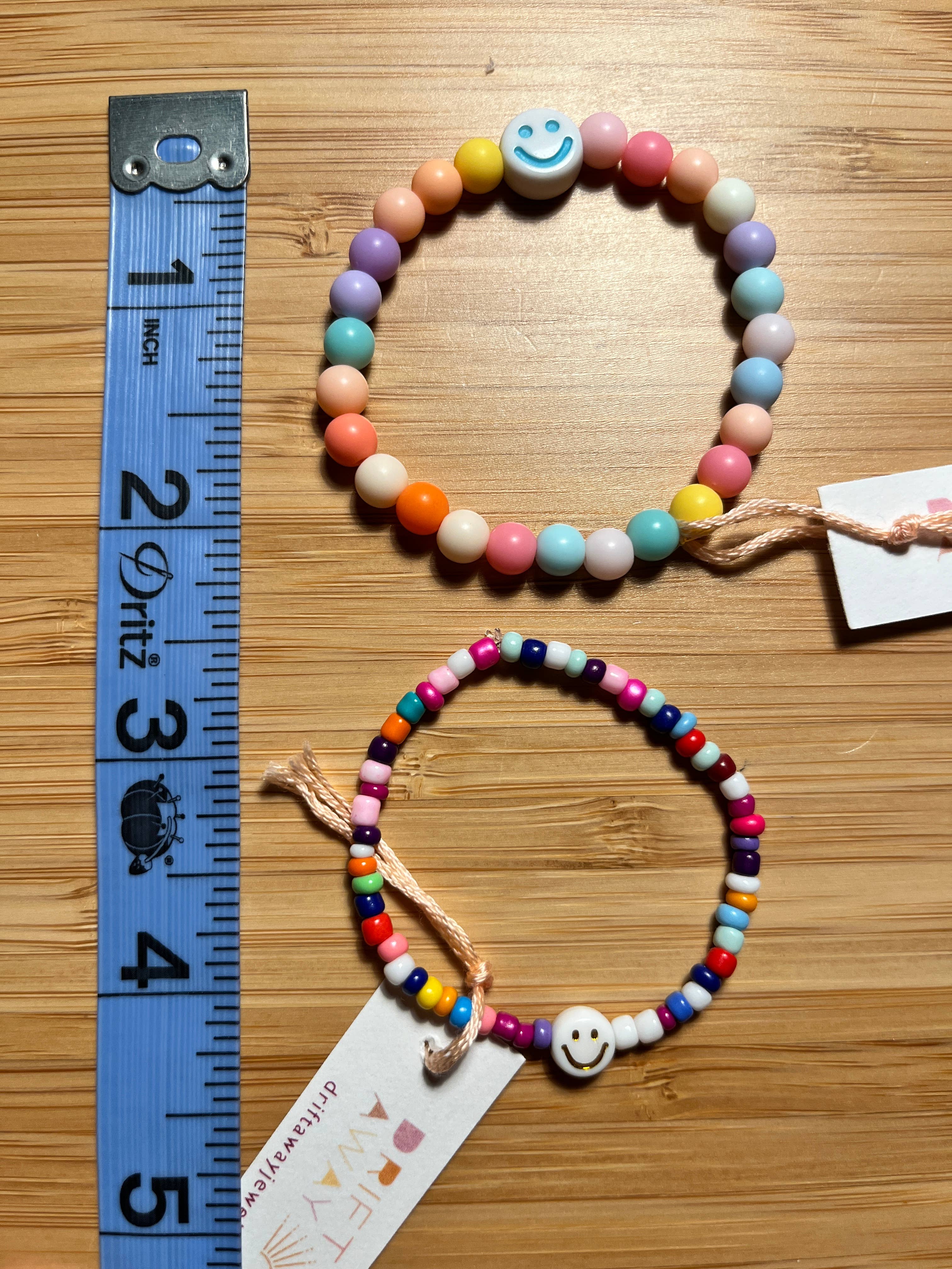 Un bracelet Happy Smile avec des perles multicolores pour les clients de votre enfant ! Chaque bracelet mesure 15,2 cm, une taille moyenne pour un poignet de 6 à 12 ans, mais fabriqué avec un élastique de haute qualité pour être extensible !