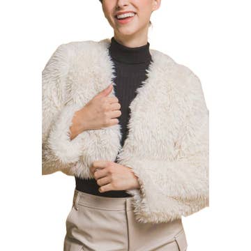 Manteau court chic en fausse fourrure à motif pied-de-poule en vente B2B