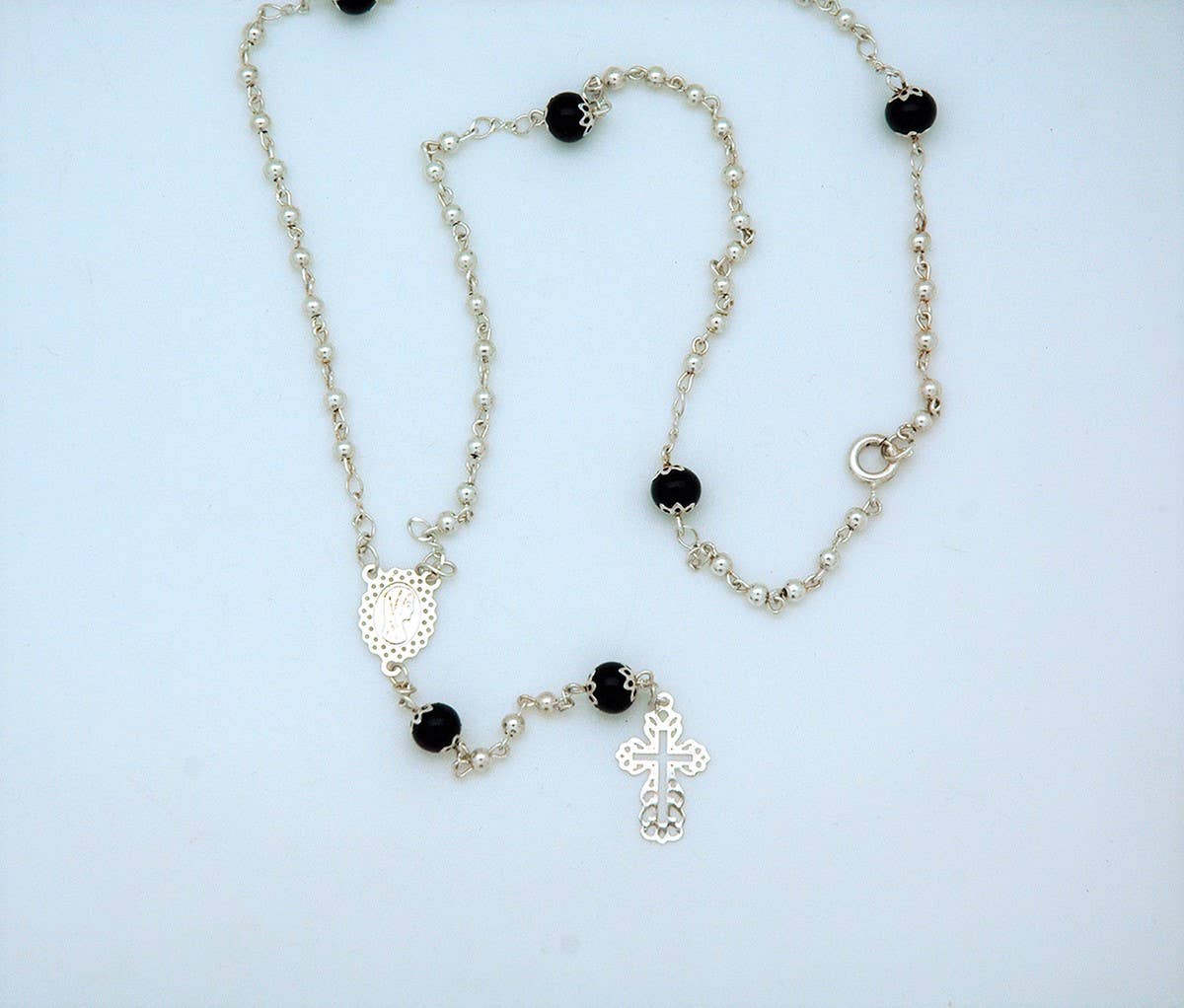 Chapelet en bois brun de 10 mm de Fatima avec argent O.f. ' S
