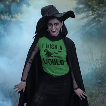 Bad Witch sur une chemise confortable en coton doux pour femme sérigraphié à la main avec de l'encre écologique