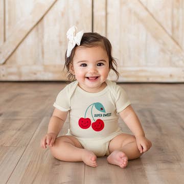 Body pour bébé en 100 % coton biologique (certifié GOTS) avec imprimé de fruits. Manches courtes, style cache-cœur avec boutons-pression croisés sur la poitrine. * Bouchons sans nickel * Colorants non azoïques * Produit de manière éthique 1 % du chiffre d'affaires est reversé à des organisations environnementales à but non lucratif via 1% for the Planet.