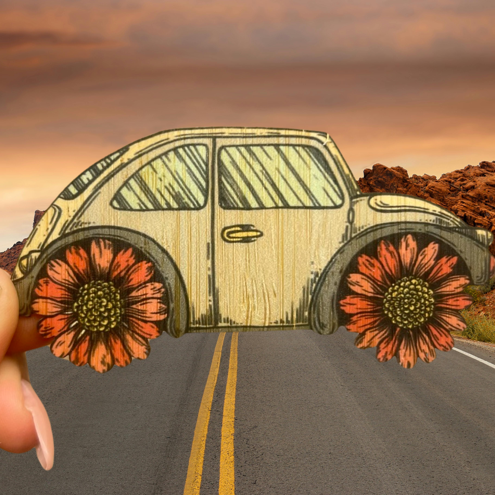 VW Beetle avec fleurs | Joli autocollant | Autocollant Hippie Happy en vente B2B