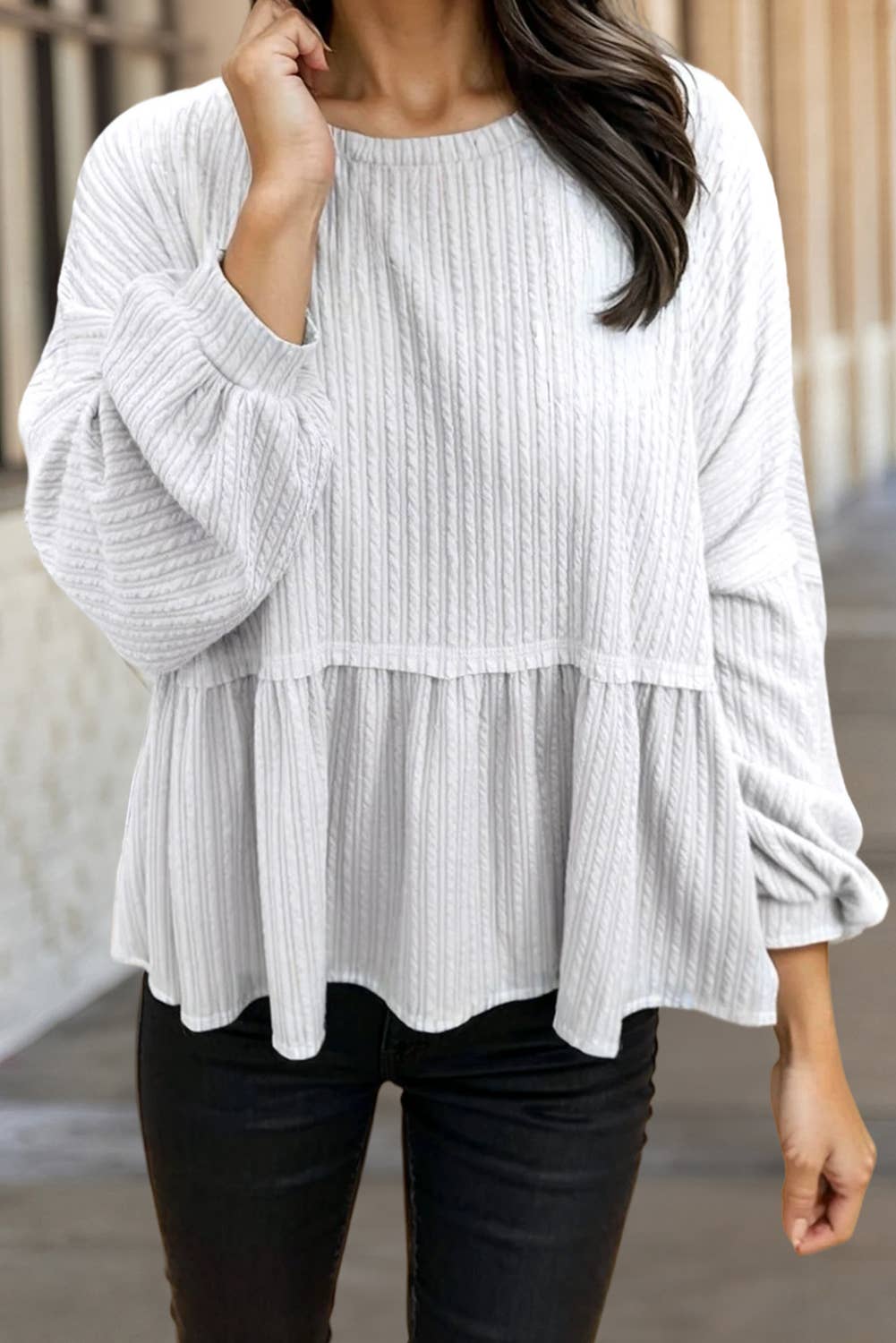 Haut à volants texturé à manches longues vintage et chic en vente B2B