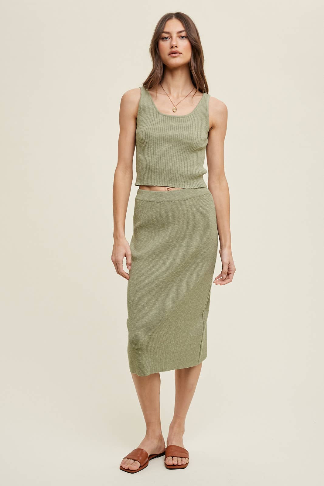 Robe midi côtelée à rayures sans manches