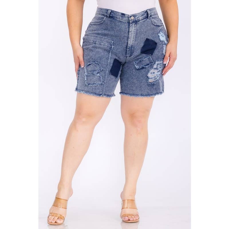 - Numéro de style : PHM1415HL Short en jean à imprimé vieilli Ce short arbore un design en jean classique avec une touche contemporaine : les détails vieillis sur l'ensemble du tissu lui confèrent un look usé et avant-gardiste, tandis que les patchs ajoutent une touche unique et personnalisée. La couleur et la texture des patchs peuvent varier, ce qui rend chaque paire distincte et accrocheuse. La coupe de ce short est conçue pour être confortable et flatteuse. Elle s'ajuste à la taille et offre une coupe décontractée au niveau des hanches et des cuisses.