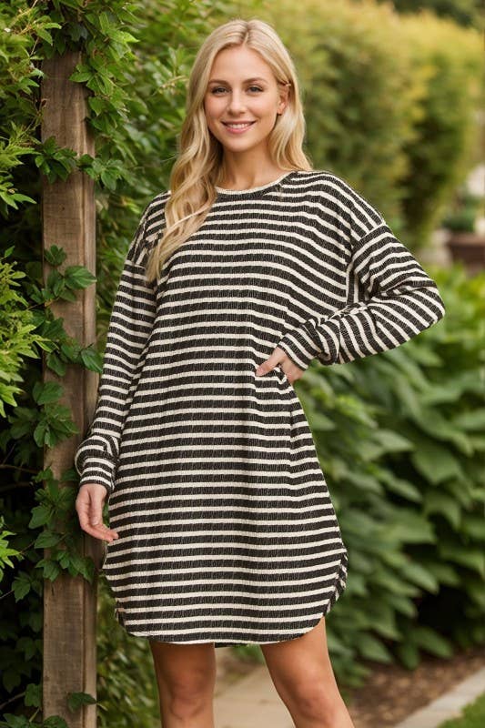-Robe tunique rayée à col roulé -Tissu doux, style décontracté, à porter tous les jours. -Taille du modèle : Small (5'10" 31-23-34) -Fabriqué aux États-Unis