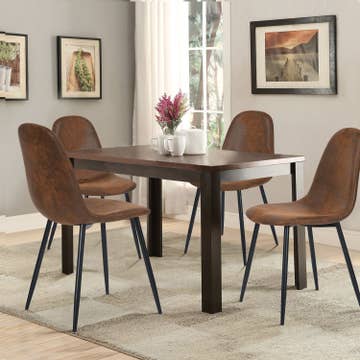 Chaise de salle à manger en tissu marron vintage avec pied en métal noir