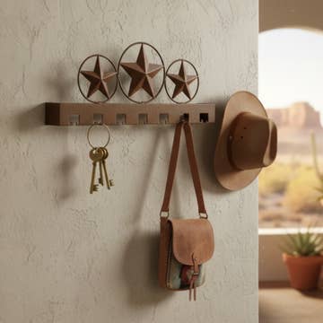 Crochet Cowboy en Fonte Frontier - Étoile, Fer à Cheval & Accent Revolver