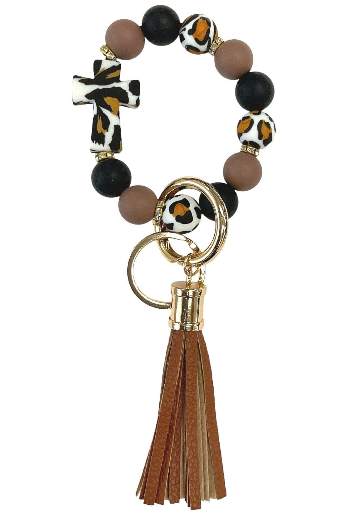 Bracelet porte-clés en forme de croix perlée en silicone BB139x191
