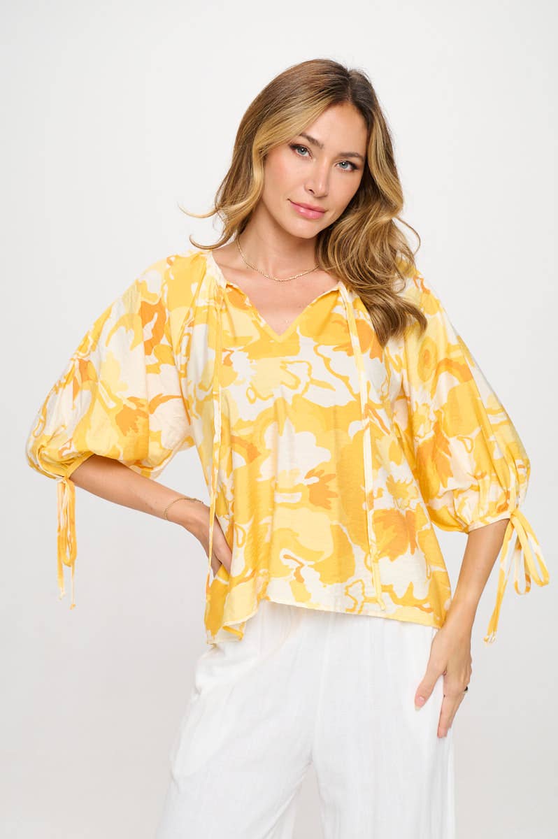 Blouse imprimée à col avec manches 3/4 retroussables et poche zippée. Mensurations du mannequin : Le mannequin porte une taille S Taille : 5' 8" Taille : 25 Buste : 34B Taille : 2