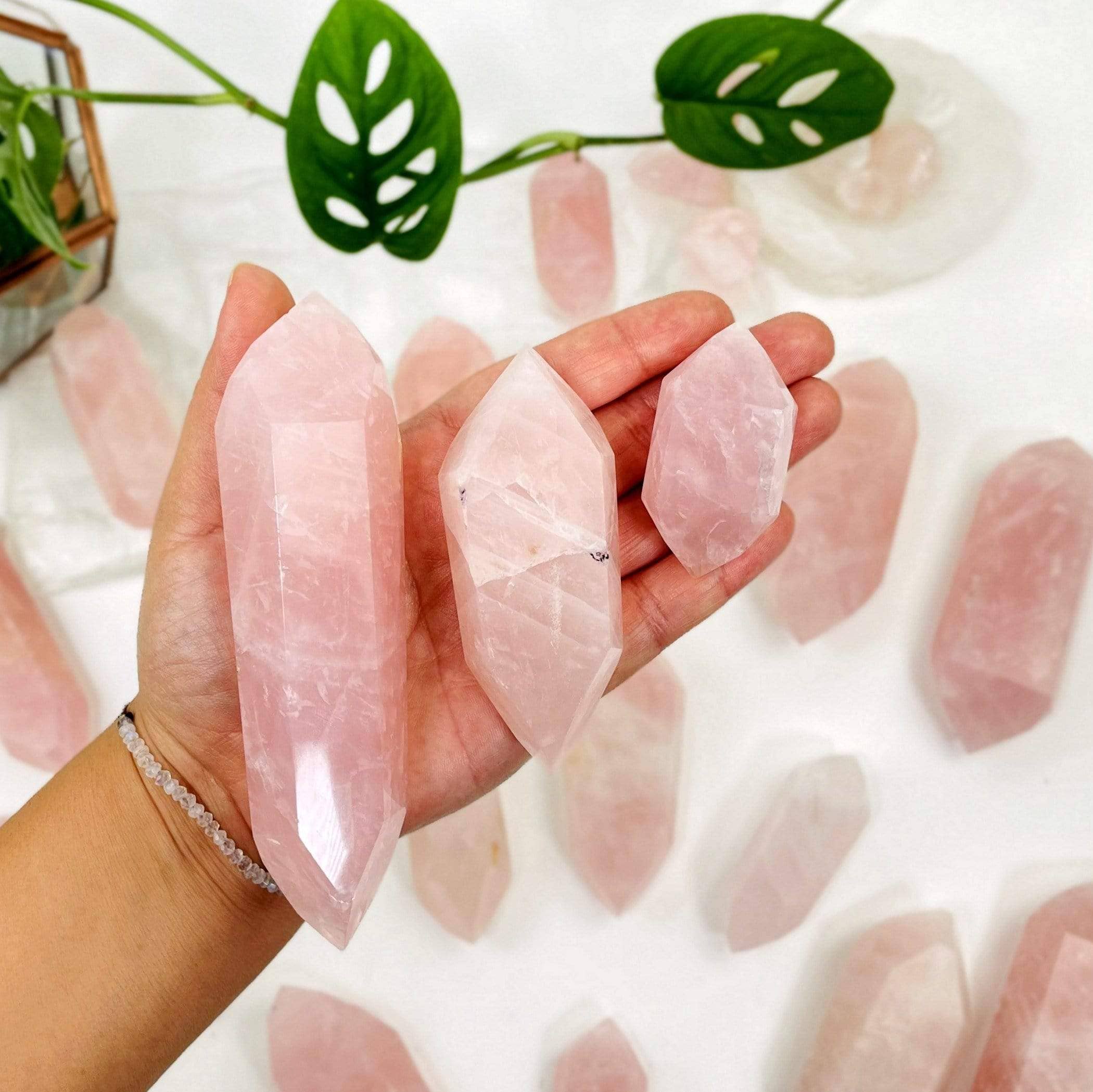 Tour à 8 facettes en quartz rose 3,5 à 3,75 pouces ou 8,9 à 9,5 cm en vente B2B