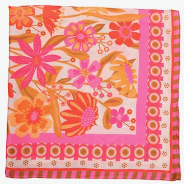 Foulard léger avec des imprimés colorés et ludiques pour égayer toutes vos tenues. 100 % coton Dimensions : 33 cm x 152 cm Fabriqué à la main à Portland, Oregon
