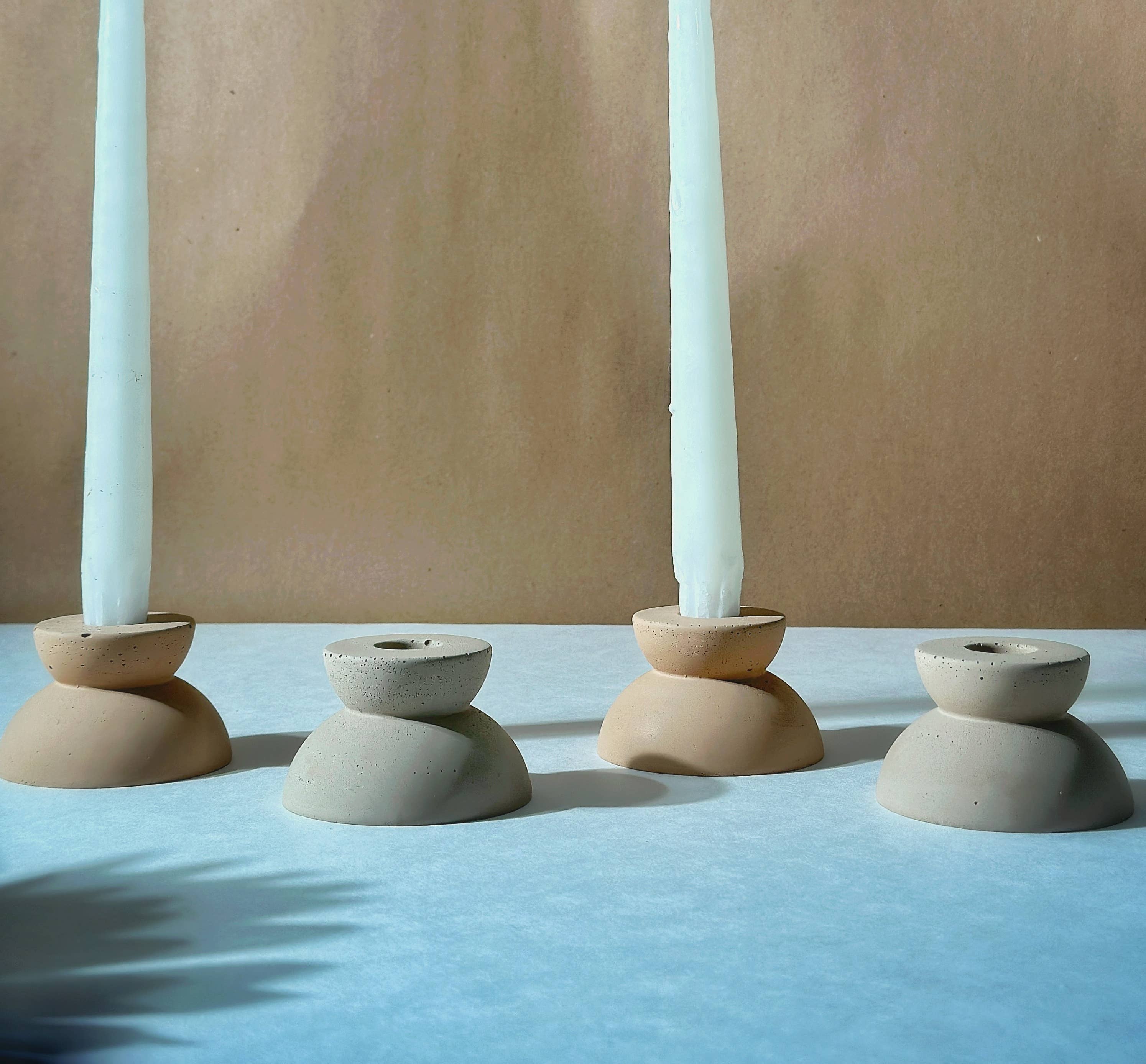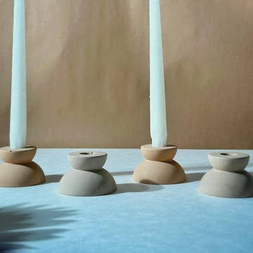 Fabriqués et coulés à la main dans notre atelier, nos chandeliers coniques sont disponibles en deux tailles pour varier les hauteurs. Lisses tout en étant légèrement texturés au toucher, vous apprécierez les petits grains de pierre qui apparaissent discrètement. Leur forme en sablier offre une dimension et une touche d'élégance parfaites pour un dîner, un hall d’entrée ou tout autre endroit de la maison nécessitant un renouveau ou une ambiance raffinée. * Forme en sablier * Idéaux pour agrémenter tous les espaces, tables d'entrée ou dînatoires avec lumière et hauteur * En raison de leur fabrication artisanale, chaque chandelier peut présenter de légères variations de texture, couleur ou hauteur * Ponçés et scellés * Bougies coniques non incluses * Convient aux bougies coniques standard * Dimensions : grand modèle 9,5 cm (3,75") de haut x 5 cm (2") de large / petit modèle 6,5 cm (2,5") de haut x 5 cm (2") de large * Matériaux : béton Pour le nettoyage, essuyez délicatement avec un chiffon humide.