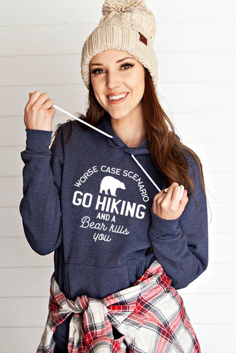 Ne laissez pas les ours vous empêcher d'explorer le grand air ! Ce sweat à capuche hilarant est parfait pour quiconque aime la randonnée mais a une peur saine des ours. • Disponible en sweat à capuche ou col rond Gildan confortable • Imprimé à la main avec un design d'ours amusant • Fabriqué à partir d'un mélange confortable de polyester et de coton • Taille unisexe de S à 2XL pour un ajustement parfait • Fabriqué en Amérique du Sud et imprimé dans le nord de l'Idaho Idéal pour les détaillants à la recherche d'un vêtement ludique et aventureux qui allie confort et humour.