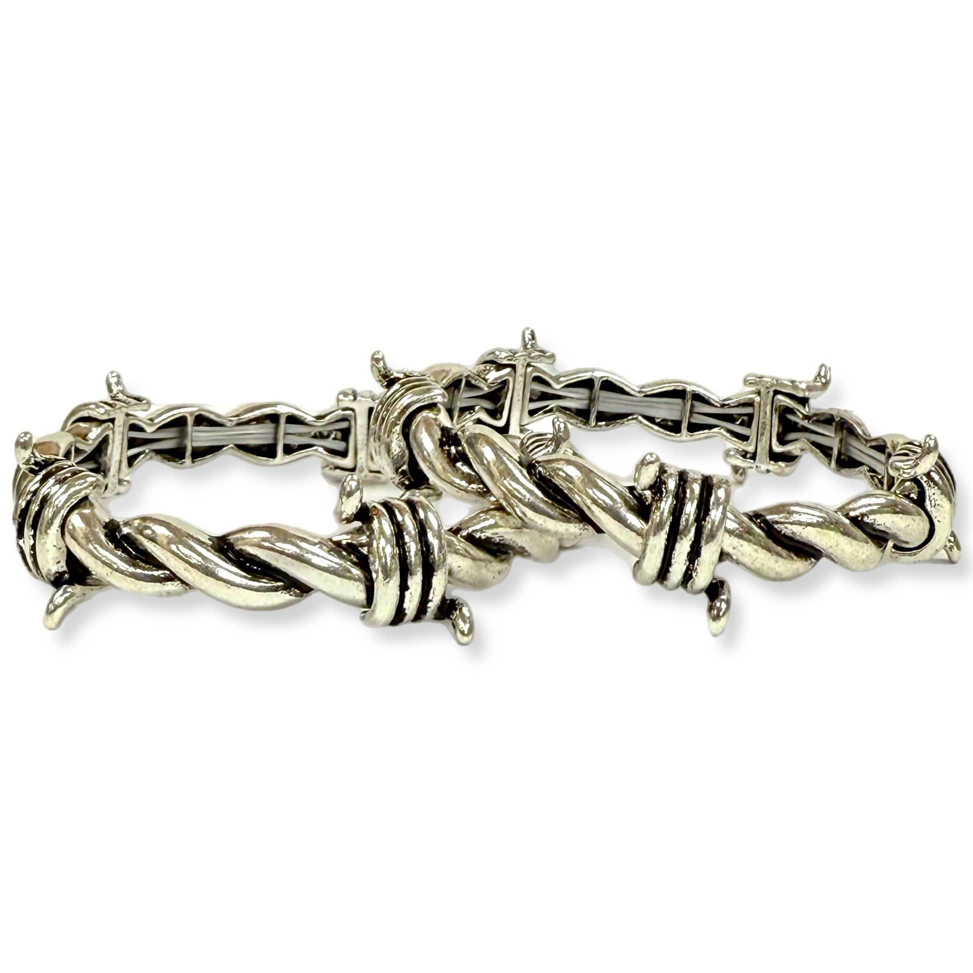 Affichez votre style distinctif avec le bracelet extensible en fil de fer barbelé Western de Snowing West. Ce bracelet à maillons et chaînes présente un design unique en fil de fer barbelé, en faisant une pièce remarquable dans toute collection de bijoux. Idéal pour les personnes qui apprécient le style unique, ce bracelet de Snowing West est un incontournable.