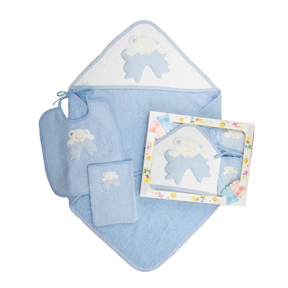 Ensemble Crèche 3 pièces SPLASH composé d'une serviette 37x48 cm + bavoir 27x34 cm avec élastique en toile imprimée associée à une éponge + sac en toile unie Composition : 100% coton Emballé : DANS UN SAC AVEC CROCHET