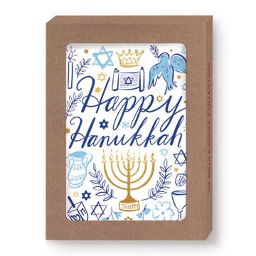 Présentant l'aquarelle de Felix, un beau stock et la police manuscrite de Felix, ces charmantes cartes de vœux en boîte sont un délice. Des enveloppes de qualité apportent la touche finale. 4,25 x 5,5 pouces plié 8 cartes et enveloppes Papier sans acide ultra-premium légèrement texturé Présenté dans notre nouvelle boîte grise - pas celle présentée - qui est vraiment belle et possède une fenêtre transparente. Avant : joyeux Hanoukka