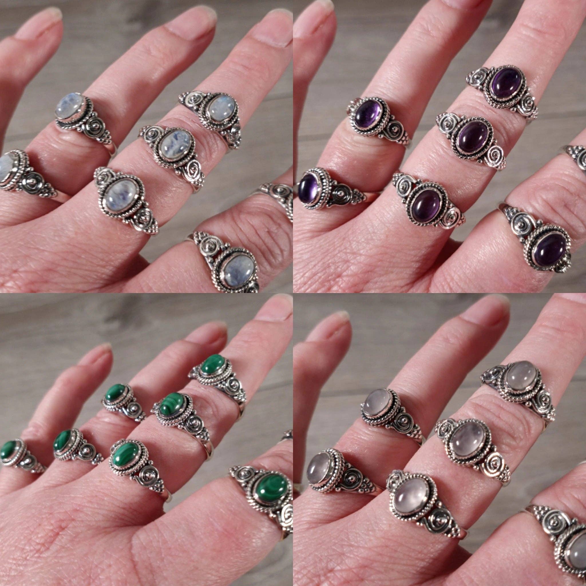 Ce sont mes bagues Moon and Stone réglables qui arborent une pierre de votre choix. Tailles de pierre (4 ou 5 mm) : améthyste, grenat, péridot, émeraude de laboratoire, onyx noir, opale, citrine, nacre, lapis, topaze bleue, saphir, pierre de lune. **S' il vous plaît envoyez-moi un message pour me faire connaître les pierres que vous aimeriez J'utilise soit des lunettes à bords lisses, soit des lunettes à bords dentelés, ce sera aléatoire à moins que vous ne me disiez une préférence à l'avance. Toutes les lunes que je fabrique sont entièrement faites à la main une à la fois, donnant à chacune un aspect spécial. La texture qui leur est ajoutée est toujours unique ! Matériau : argent (.925). Tous les matériaux sont hypoallergéniques. Ces bagues sont conçues et fabriquées à la main dans mon studio à Concord, NH.
