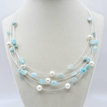 Collier de perles en agate léopard bleu Zoe