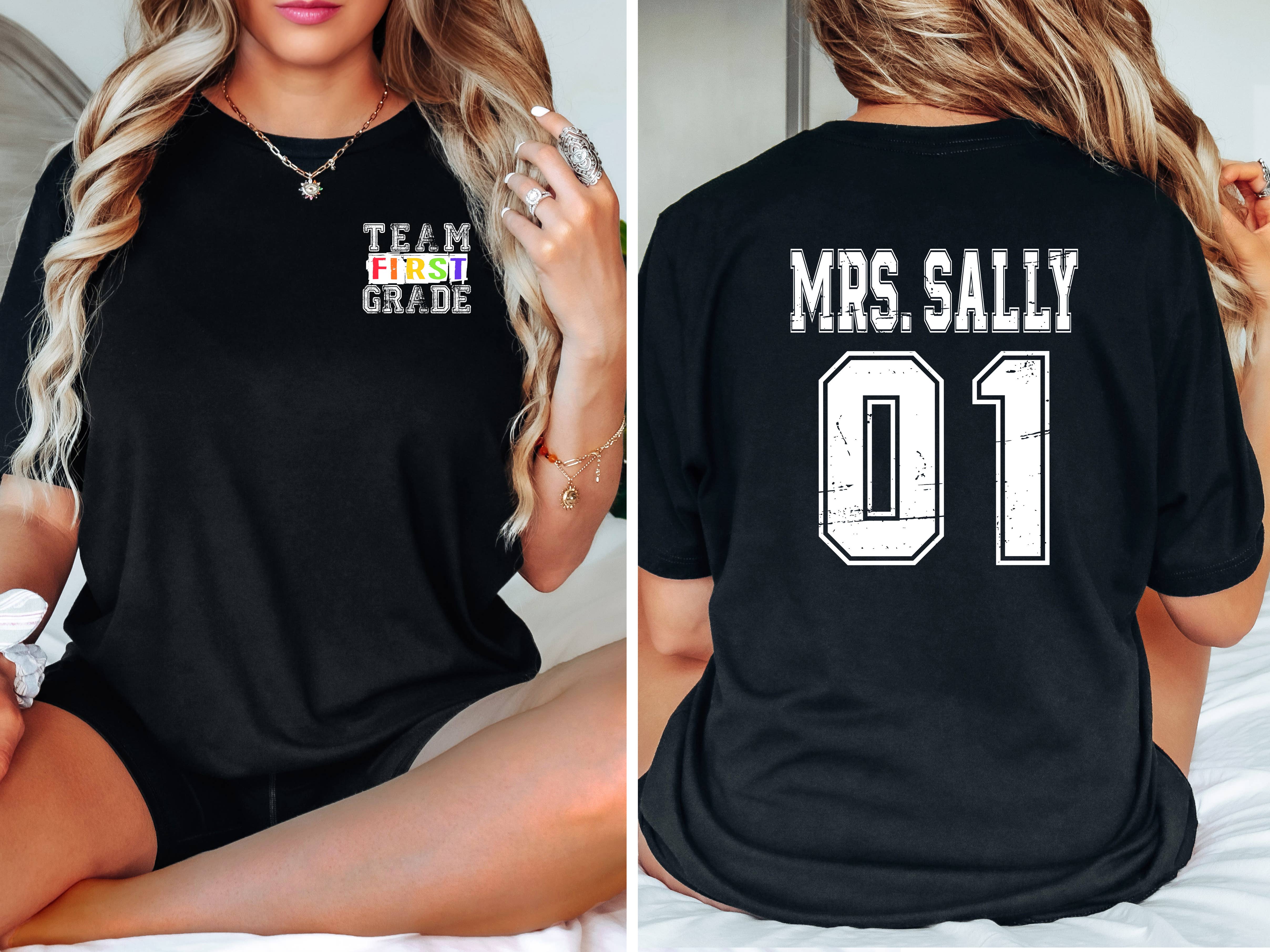 T-shirt graphique Éclair Léopard École * T-shirt graphique blanc 100 % coton, 5,0-5,5 oz. * Le design du t-shirt graphique présente votre niveau scolaire personnalisé répété sur quatre lignes de différentes couleurs, avec un éclair léopard devant le niveau scolaire. Ce haut est parfait pour la Semaine d'appréciation des enseignants ! * Indication de taille : Il s'agit d'un t-shirt blanc unisexe basique, qui taille normalement. Voir les images supplémentaires pour les tableaux de tailles. * Instructions d'entretien : Lavage en machine à froid. Ne pas utiliser de javel. Séchage en machine à température moyenne. Ne pas nettoyer à sec. Procurez-vous ce t-shirt que vos élèves vont adorer ! Associez-le à notre Zayda Zip Hoodie pour un look superposé. Nous nous efforçons continuellement de vous offrir les prix les plus bas et les meilleurs produits disponibles.