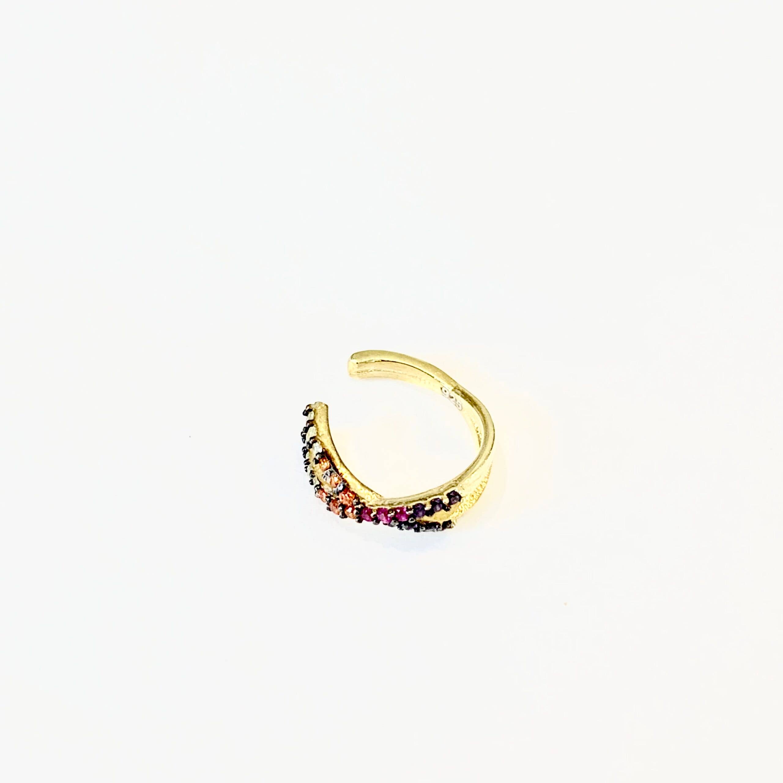 Manchette d'oreille pavée à 5 rangs Il s'agit d'une manchette d'oreille faite à la main qui est conçue pour s'adapter à toutes les oreilles ! Pour la fixer, retirez le haut de votre oreille et faites glisser le brassard vers le bas sur l'oreille moyenne. Chaque pierre est serrée à griffes, alors n'essayez pas de changer la forme ou de la serrer, sinon vous risqueriez de casser votre manchette. Le brassard tombera probablement en biais, alors laissez la gravité faire son truc ! *Choisissez la couleur parmi 5 couleurs