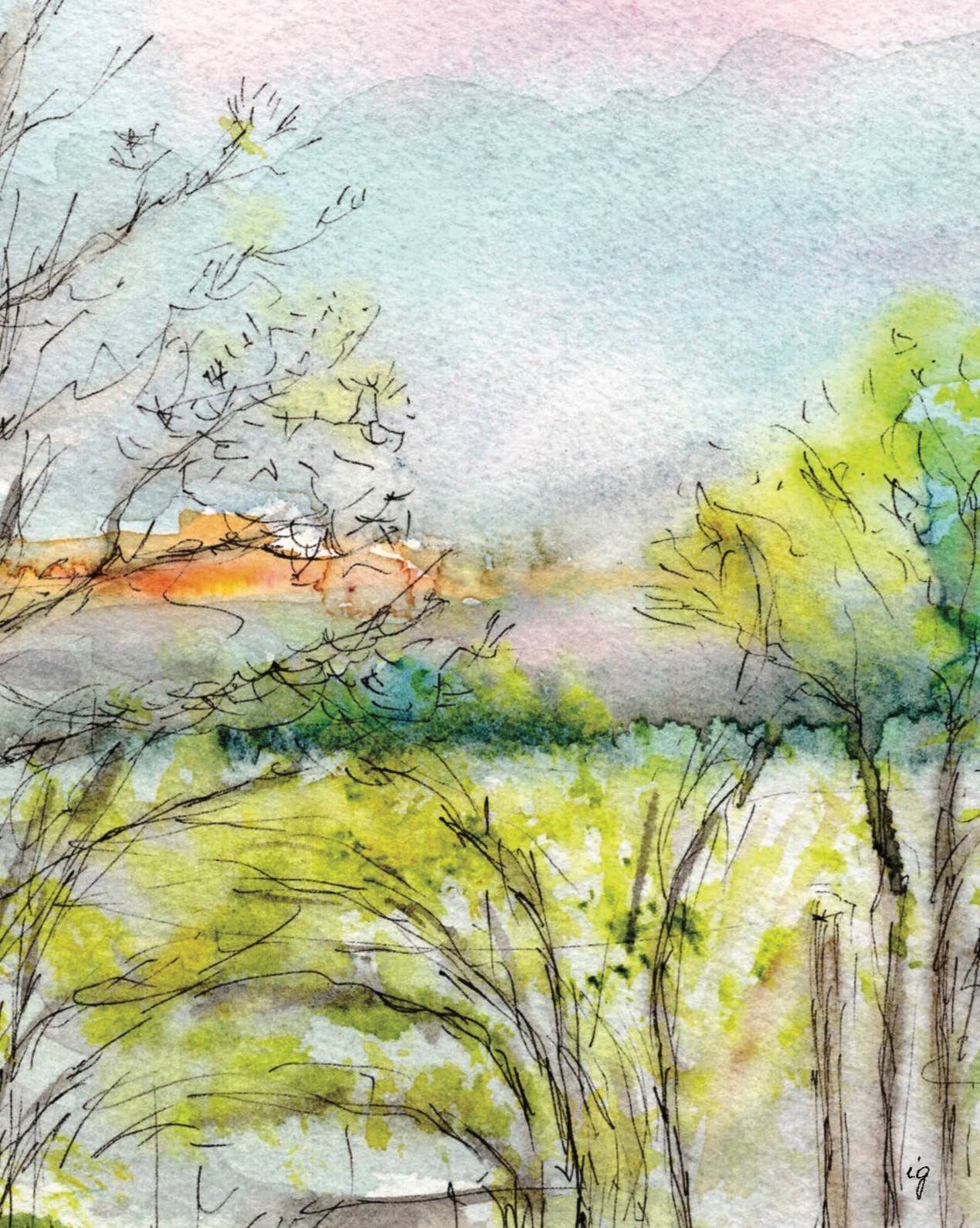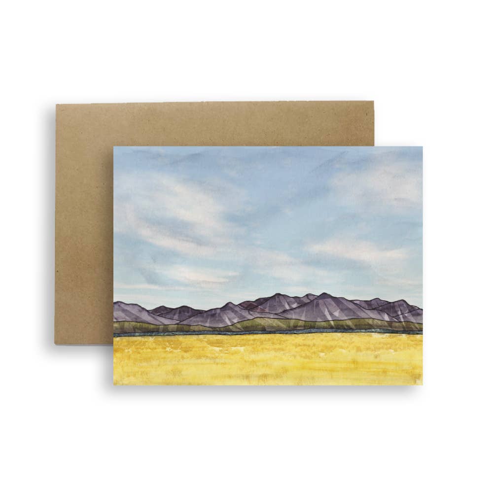 Une carte de vœux représentant un pin Bristlecone, l'arbre emblématique du Nevada, poussant près d'un précipice illustré à l'encre et à l'aquarelle. L'intérieur est vierge pour que vous puissiez écrire votre propre message spécial. La carte de vœux mesure 5 x 7. Elle est imprimée sur du papier cartonné épais et est accompagnée d'une enveloppe blanche à rabat carré A7.
